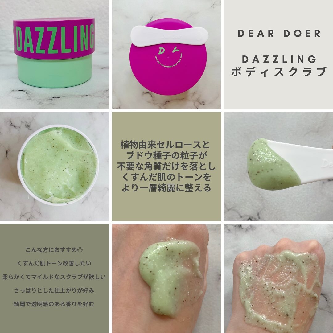 \大注目の韓国ボディスクラブ/——————————————— 𝐃𝐄𝐀𝐑𝐃𝐎𝐄𝐑 BODYSCRUB———————————————PLAZAでオフライン展開中地球にも私にも優しいボディスクラブ#ディアドア☻ັ🌿フランスグローバル調香師と韓国調香師がコラボして開発したユニークで癒やされる 香りがほんのり続くチューブタイプのお手軽ボディスクラブ💡▶グレープシード DAZZLINGLIKESUNSHINE 強度★☆☆ グレープシード✕セルロース▶パーライト FINDTHEHIDDENREALME 強度★★☆ パーライト✕ソルト▶チャコール BREAKTHROUGHTHEWALL 強度★★★ チャコール✕ソルト 私は泡立ててボディウォッシュとしても使えるパーライトと、脂性肌向けチャコール使ってみた…!最近暑くなってきたから笑敏感肌乾燥肌さんは、セルロース配合の優しめグレープシードが良さそう◎わかりにくいかもだけど、ソルトの大きさと量が結構違ってて、チャコールはソルトぎっしりでしっかりスクラブ感じるけど洗い上がりがしっとり✨パーライトはボディウォッシュとしても使えるからソープ部分が多く程よいスクラブ量だったんだけど、やっぱり私は泡立てずボディスクラブとして使うのが好きだな🫧✧⑅ボディスクラブって洗い上がりオイル感が残るものあると思うんだけど、冬はそれ嬉しいけど夏はちょっと苦手で…でもコレオイルではないしっとり感が残るボディスクラブで大容量300mlジャータイプ欲しくなっちゃった…!香りは、チャコールは甘めフローラルで香りしっかりめ、パーライトがほんのりフローラル軽めだから匂い苦手な人も使えそうだよ~̑̑💐PLAZAやLOFTで買えるからテスターぜひ手にとってチェックしてみてね…!̆̈!̆̈ #私の上半期ベストコスメ2024#春の紫外線対策#目指せ毛穴レス肌#推せる春色コスメ紹介#至高のツヤ肌レシピ