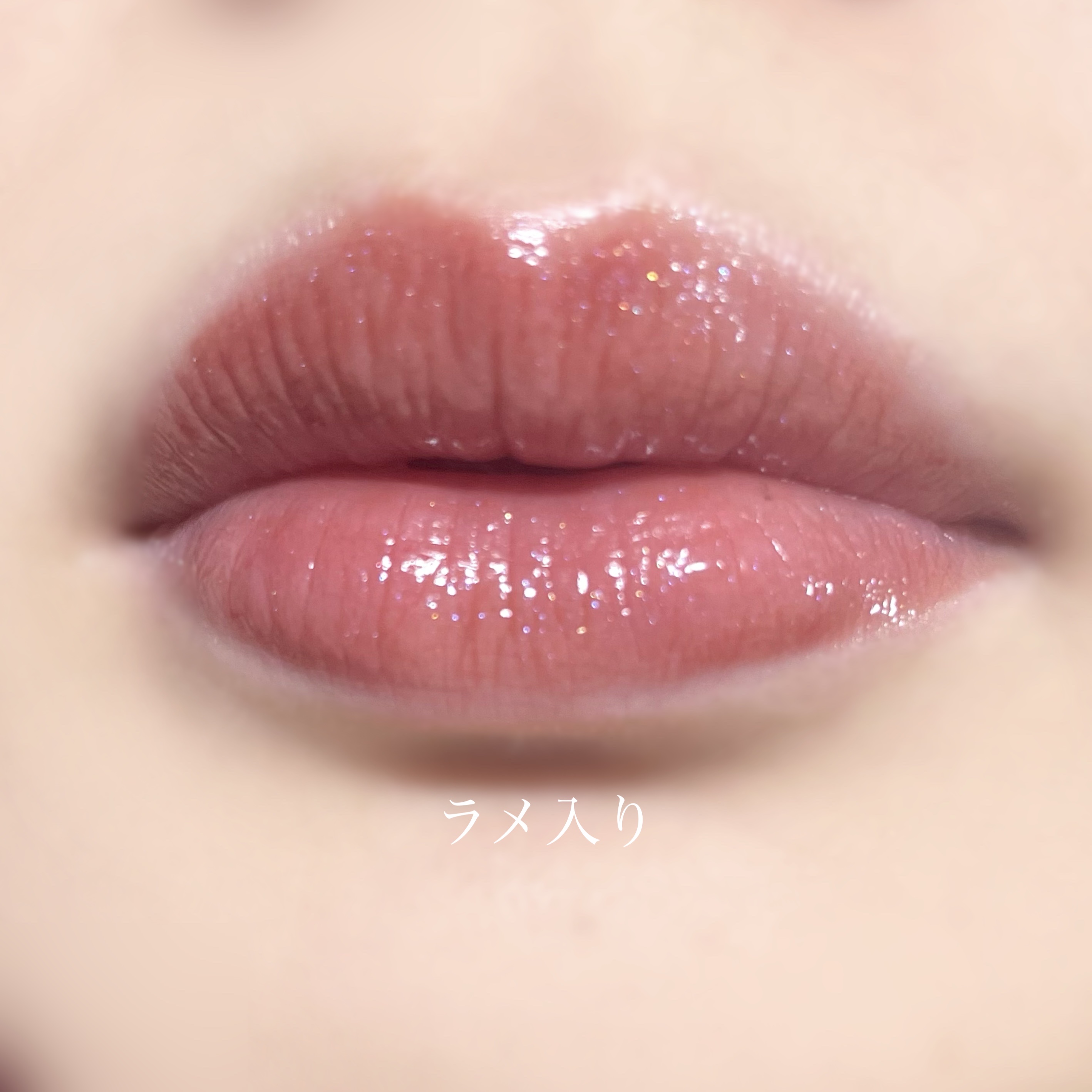 体温でとろっととろけてぷるんとした透けツヤ質感。 いちじくみたいなブラウンレッドに宝石みたいなブルーラメが煌めく💎文句なしにかわいい…! しっかり塗ると深みのある発色、ほんのり塗るとナチュラル仕上げに。 保湿力が高くて乾燥しがちな季節にももってこい🫧 使用後にティッシュで拭かないとフタが汚れやすいのだけ注意です⚠️