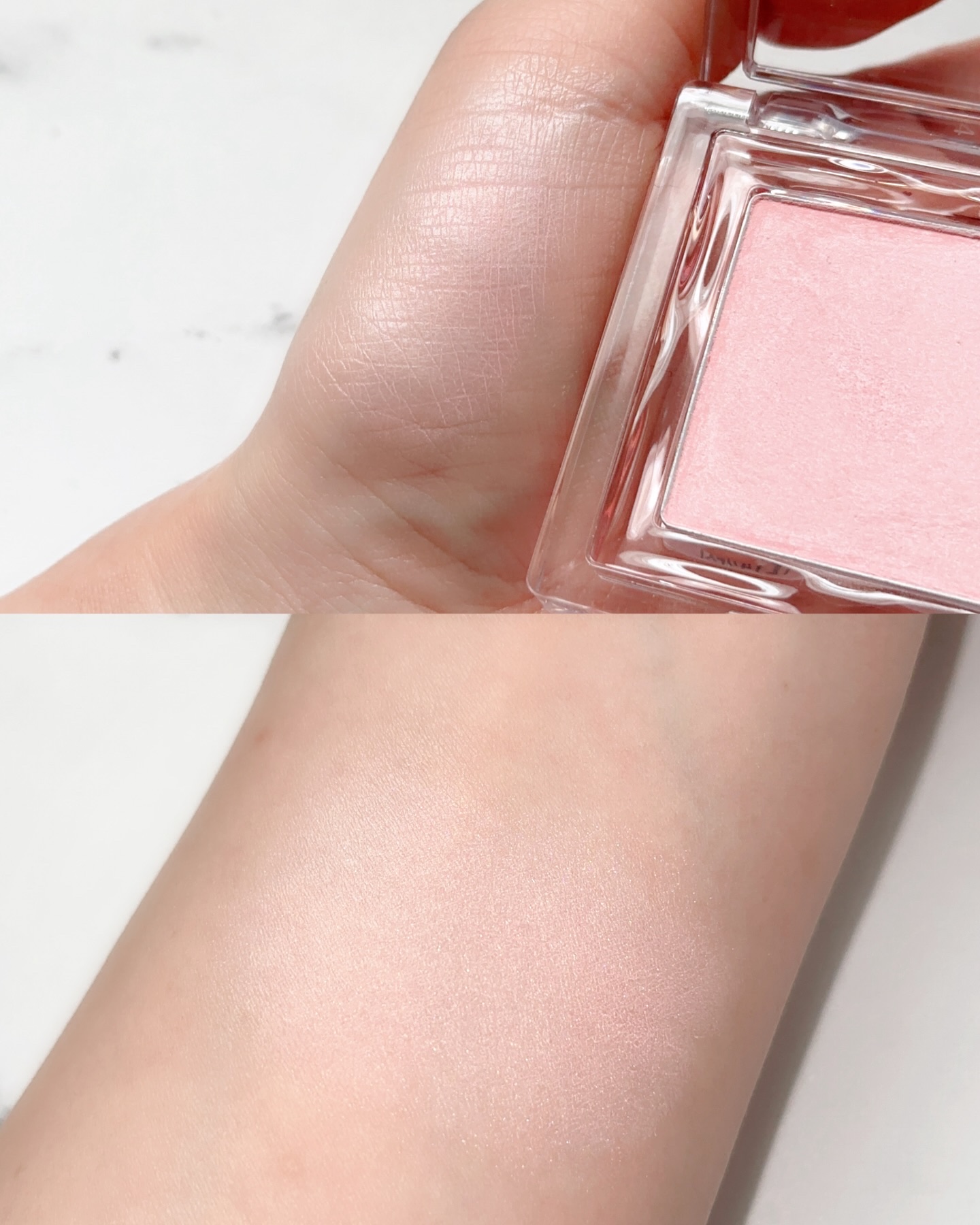 シャラシャラの軽い粉質で粉飛び知らず! よくある韓国コスメのサラサラマットって感じではなく、もっと繊細で全く粉々しさがない不思議な粉質。 この質感は唯一無二だと思う! 繊細ラメたっぷりだけど毛穴を目立たせることなく肌に溶け込み、ツヤっと頬を艶やかに見せる 透明感が増す淡いピンクカラー🩰🤍 ツヤ肌派の方、透明感のある肌に仕上げたい方、ブルベ夏の方、淡いピンクチークをお探しの方におすすめ!