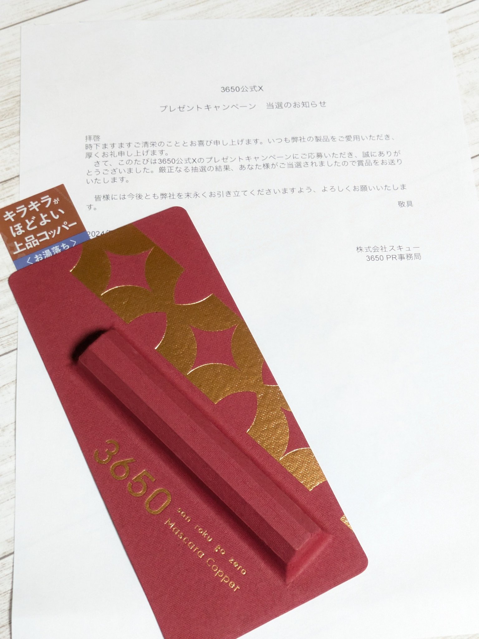3650さまのプレキャンに当選して、3650マスカラコッパーを頂きました!カラーマスカラ大好きなのですが、こちらは派手すぎないカラーで使いやすい!べとっとつかないので、色味の調整もしやすかったです。特別な日だけじゃなくて、日常使いができるカラーマスカラでした!#3650マスカラ