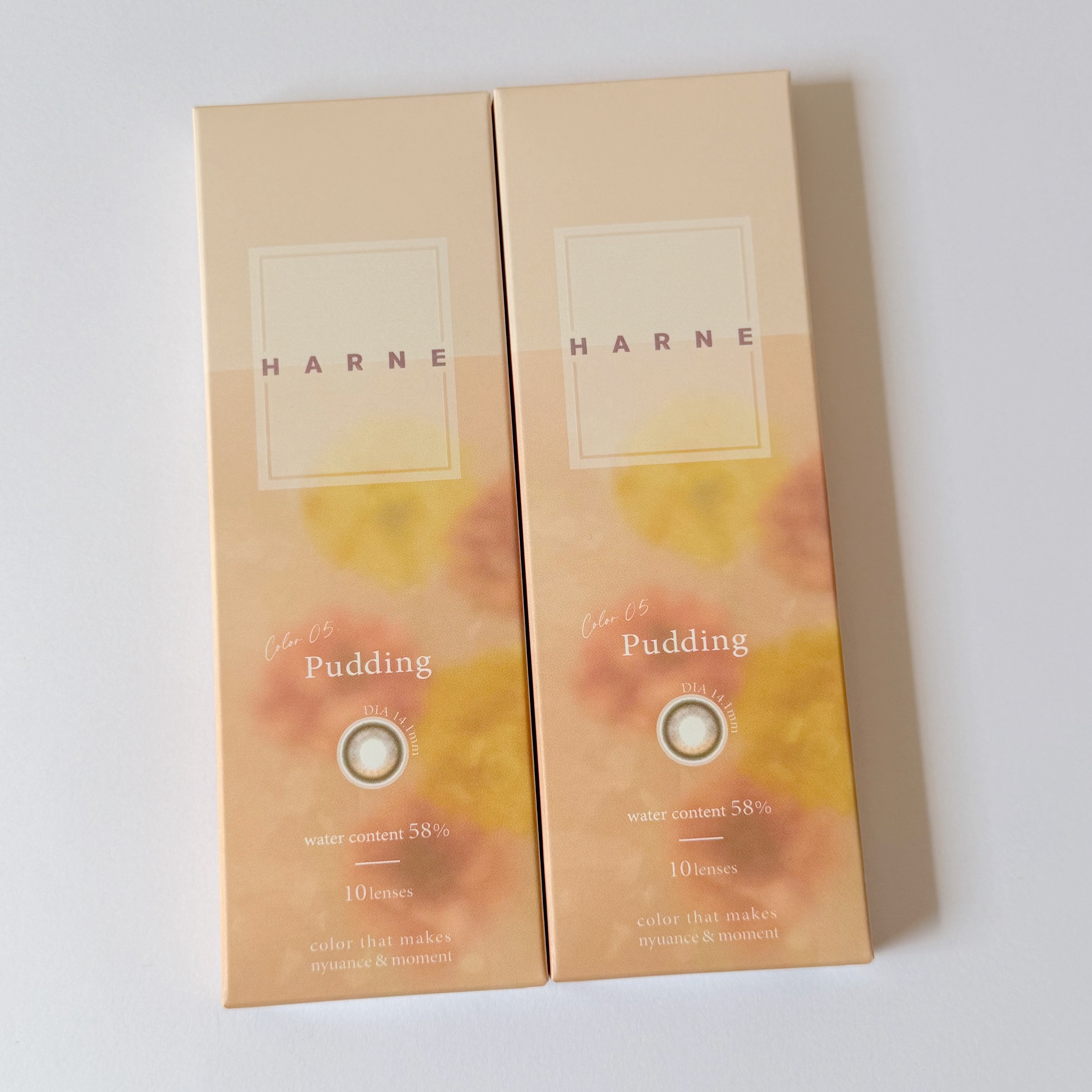 HARNE1dayプディングレンズ直径(DIA):14.1mm着色直径:13.2mmベースカーブ:8.6mm含水率:58%度なし/度あり:±0.00〜-8.001day1箱10枚入¥1,705✧̣̩☽⋆゜✧̣̩☽⋆゜✧̣̩☽⋆゜✧̣̩☽⋆゜✧...