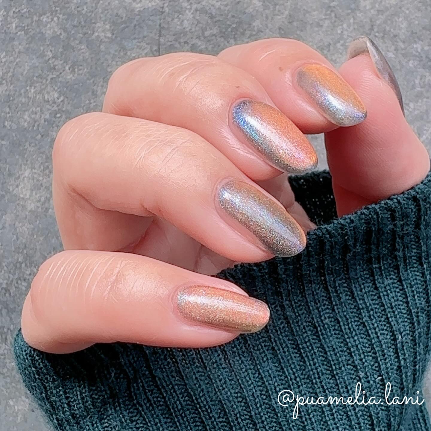 何色なの!?なマグネットジェル😶🌫️😶🌫️😶🌫️émenaMagnetygel0525緑ベースにオレンジの光のマグですが青にも紫にも見えるし本当に何色なの!?って感じで楽しめるマグネットジェルです🥳マグの光では無い多色ラメたちもめちゃく...