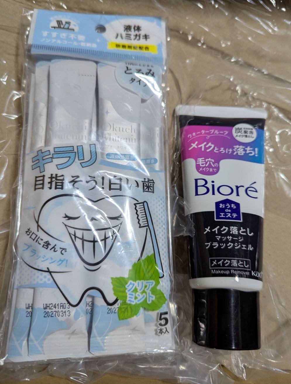 これらはいつものリピート品です。オクチホワイトニングは液にトロみがついていてよりスッキリするような気がして出かけるときは必ずポーチにポンっと入れてます。ビオレおうちdeエステメイク落としマッサージブラックジェル、大きいサイズにしようか迷ったけどやっぱりいつものにしました。炭のチカラで毛穴もきれいになるんじゃないかと思って使ってます。