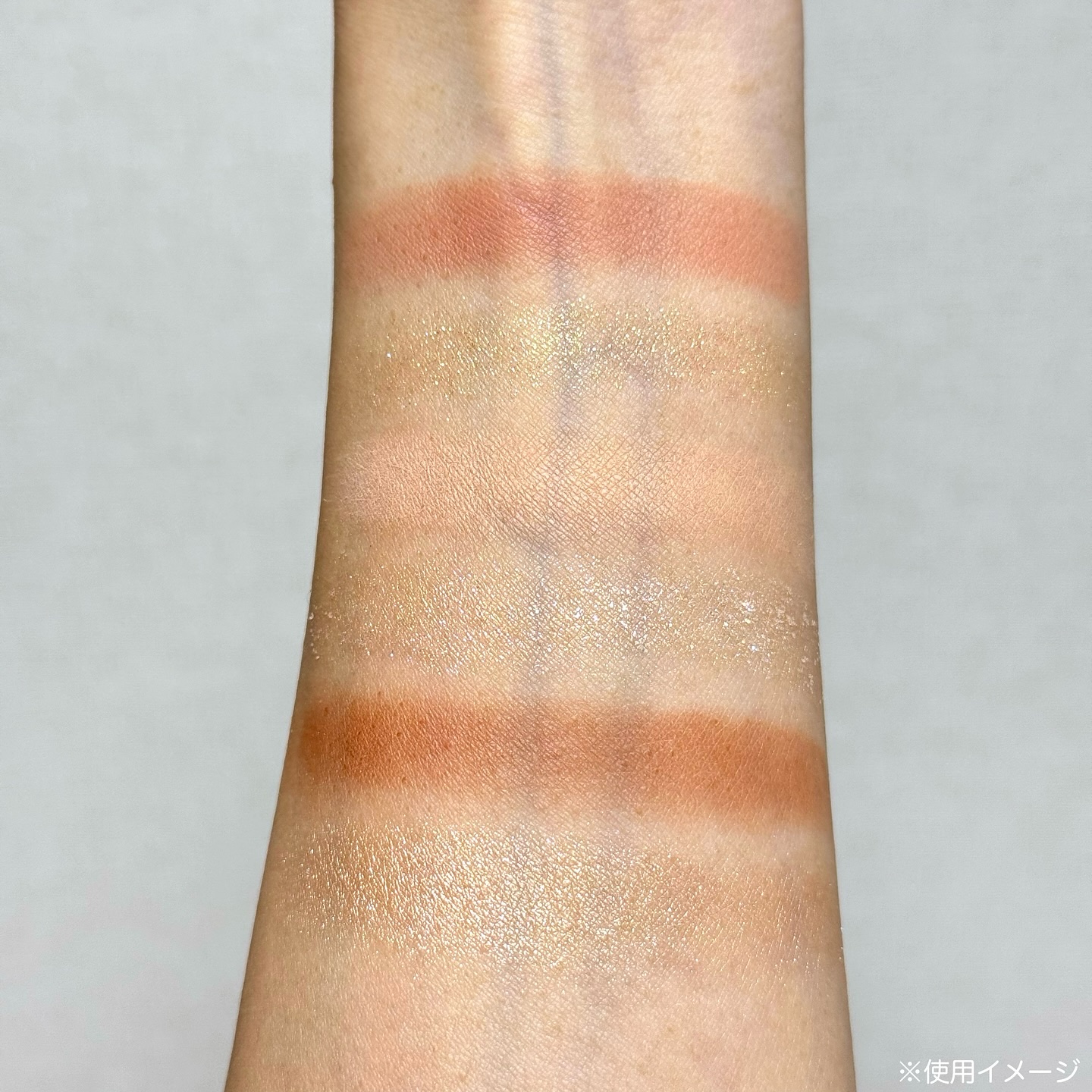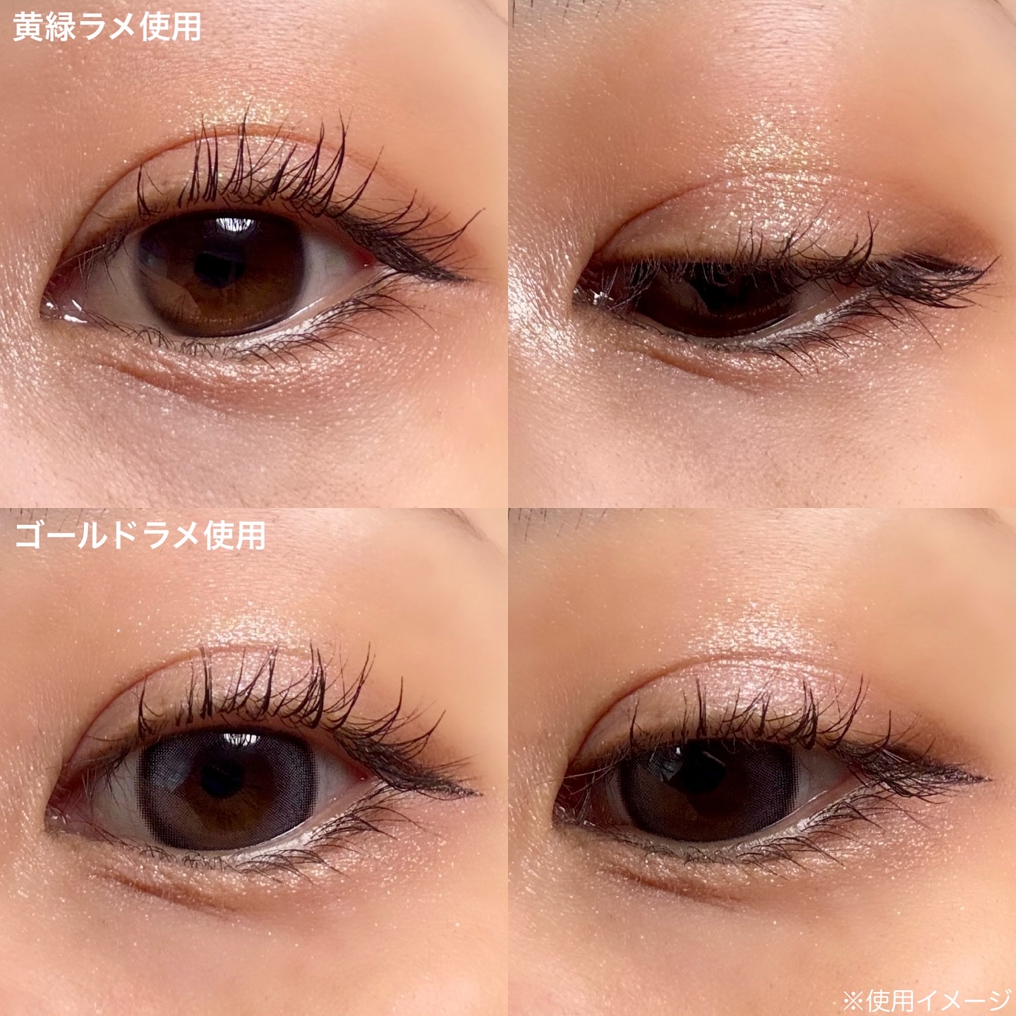マットは高発色で伸びが良いベルベットパウダーが粉飛びせず密着して、シマーはラメの粒子が細かいので、均一に広がって上品なきらめきを演出してくれます。 厳選された植物エキスで、植物由来のスクワラン、アルガンオイル、ヒアルロン酸などの保湿エキスを配合して、乾燥しながちな目元に潤いを与えてくれます。 グリーンのラメはあまり使用したことがありませんでしたが、パッと明るい春らしいメイクに仕上げてくれます。