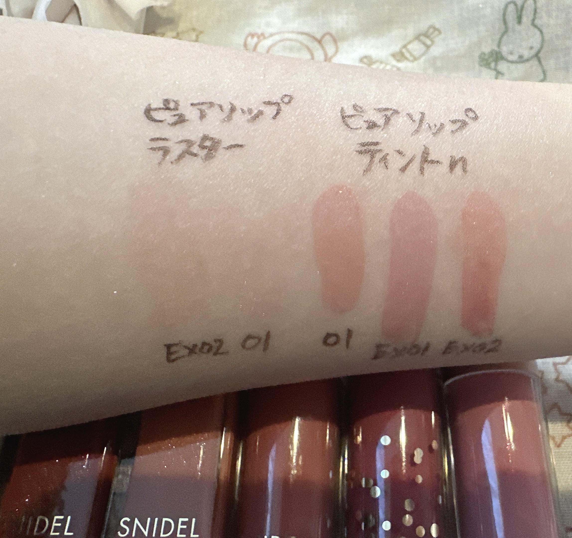 ◎SNIDEL ピュアリップティントn EX02SweetPeachTea今日発売のスナイデルビューティーリップティント可愛すぎる🥰ピンクの優しいカラー🩷中にチラチララメがいらっしゃる✨好き❤️手持ちと並べたよー#スナイデルビューティ#本日の購入品#コスメ購入品