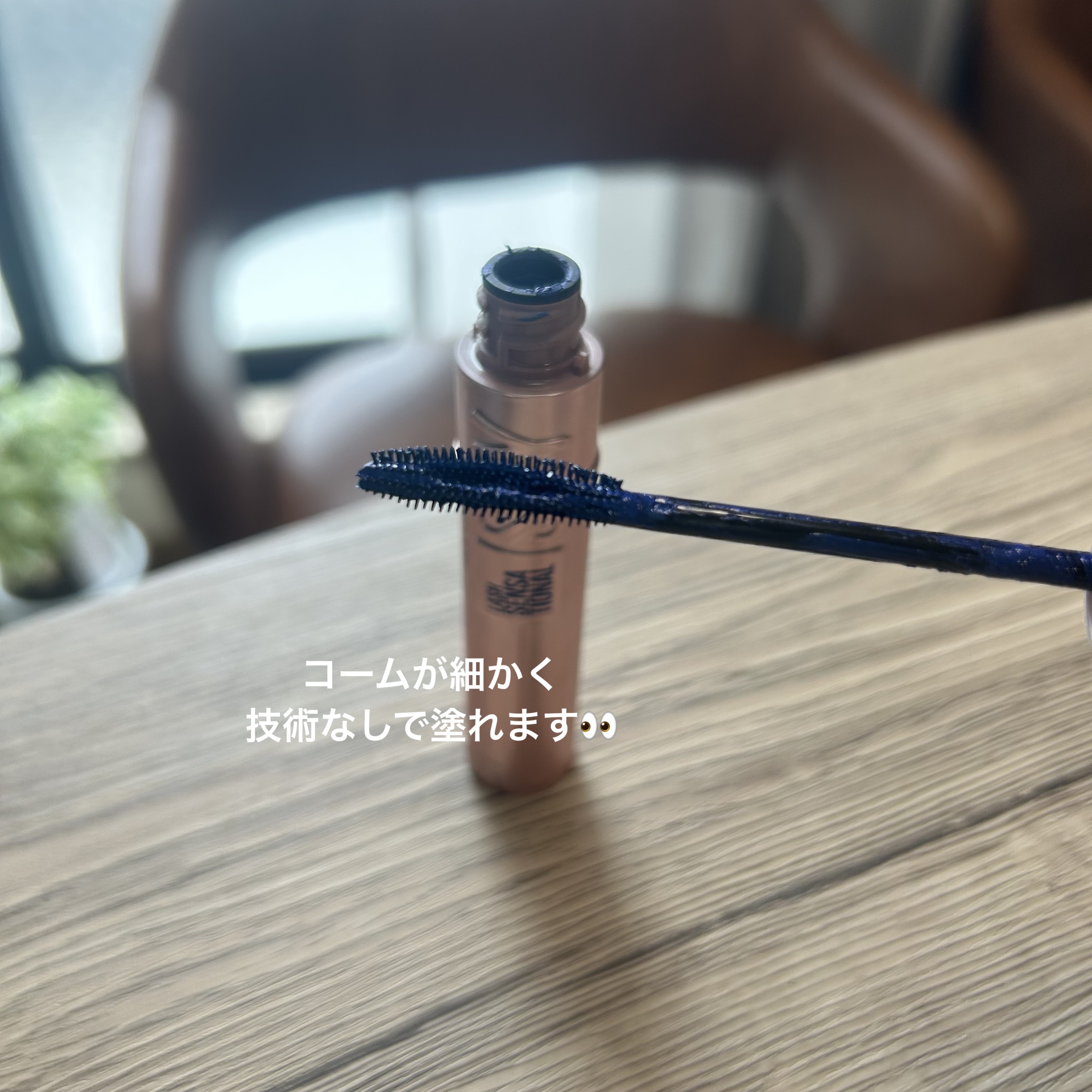 コームは固めでしっかりしている(でも押し付けるとしなるので、ある程度柔らかさもあり) コーム先端が固めなので平面にべちゃっと付きにくい。なので目蓋に誤って大量に付着するということは発生しにくい 色味はそこまで青くないので使用しやすいカラーマスカラ