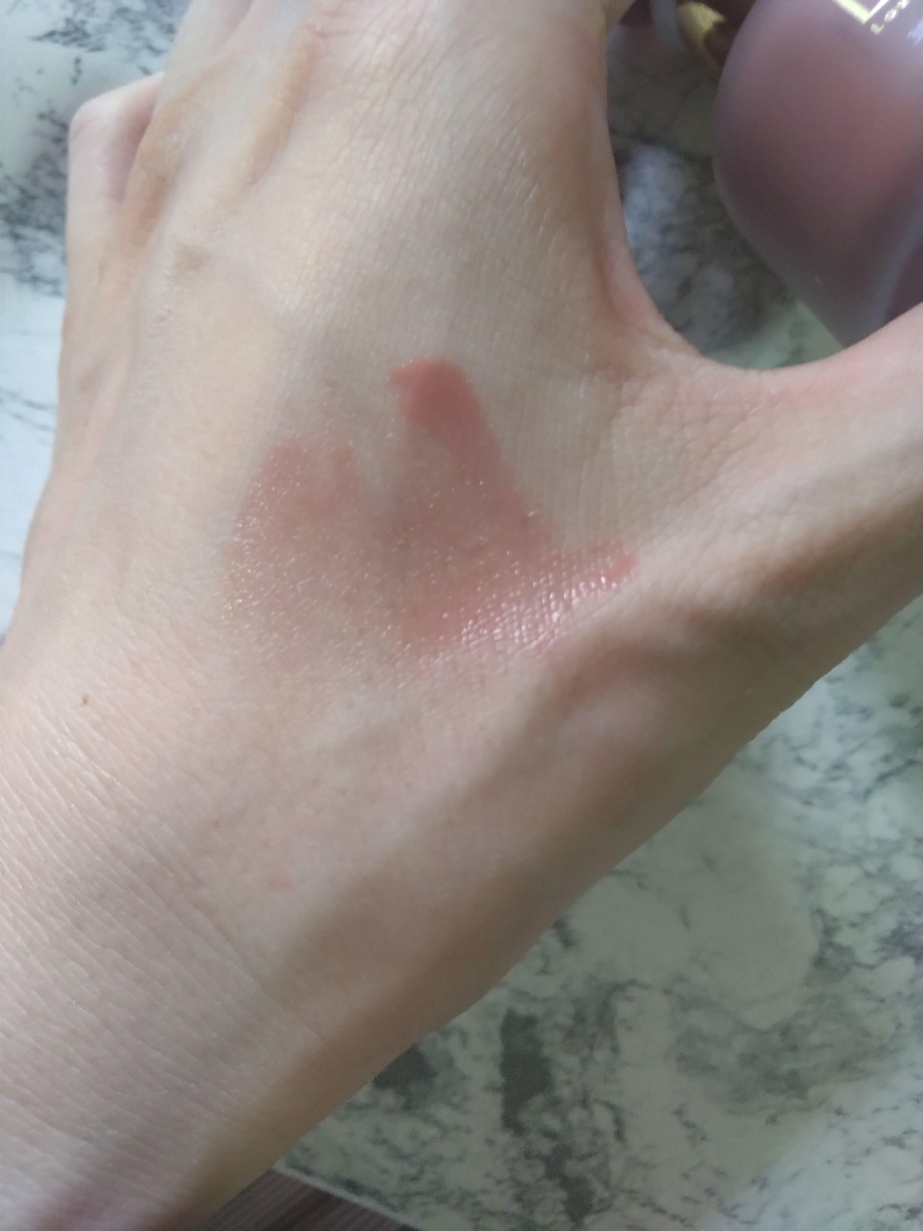 熟した葡萄みたいな深い赤紫色のワインレッドカラー🍇❤️ 塗った瞬間からうるっとじんわり血色の良いお肌に仕上げてくれました! 顔、頬、唇に塗る事ができる✨ 下に塗ってるファンデも邪魔せずに塗り広げることができました❤️ ただ1プッシュで出る量が多くて、使う量を出す調節が難しいかも💦