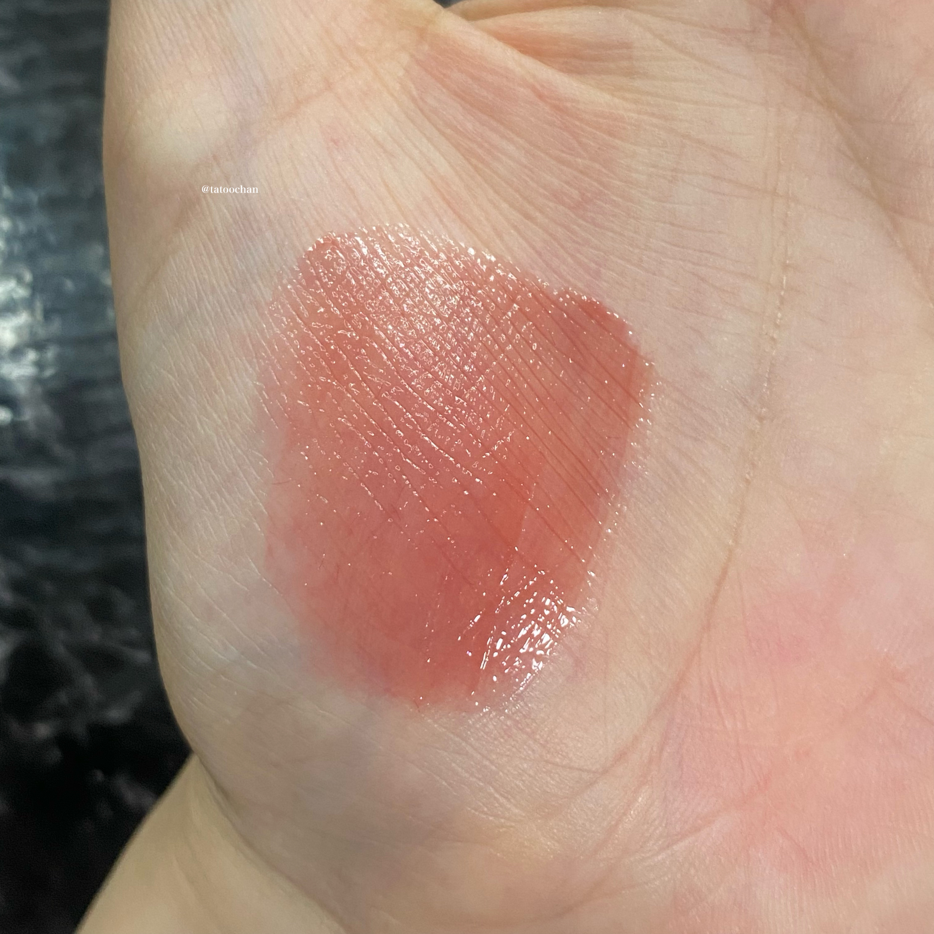 テクスチャーは結構水水しいです! 軽いつけ心地だなと感じたのでグロスとか苦手だけど落ちやすいのは嫌だって人にオススメかと思います! 発色はザ・もも!って感じです笑 見たままの色が唇に乗るので嫌いな人はいないと思います🥺💘 メガ割購入可能だったので気になったらぜひチェックしてみてください🫶🏻🥹