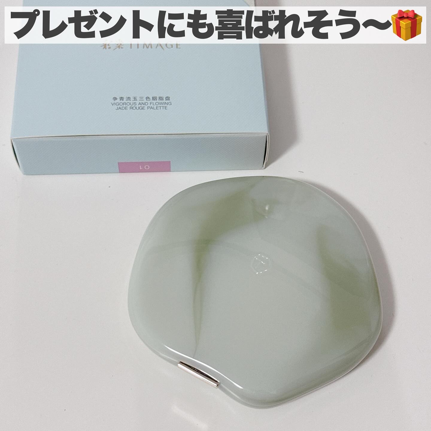 自然な膨らみを作る膨張色 血色感をupしてくれるメインカラー 輪郭を柔らかく縮めてくれる収縮色 このチークパレットは チークに苦手意識のある私にピッタリ 翡翠をイメージしたオシャレなパケは1つ1つデザインが違うんだって