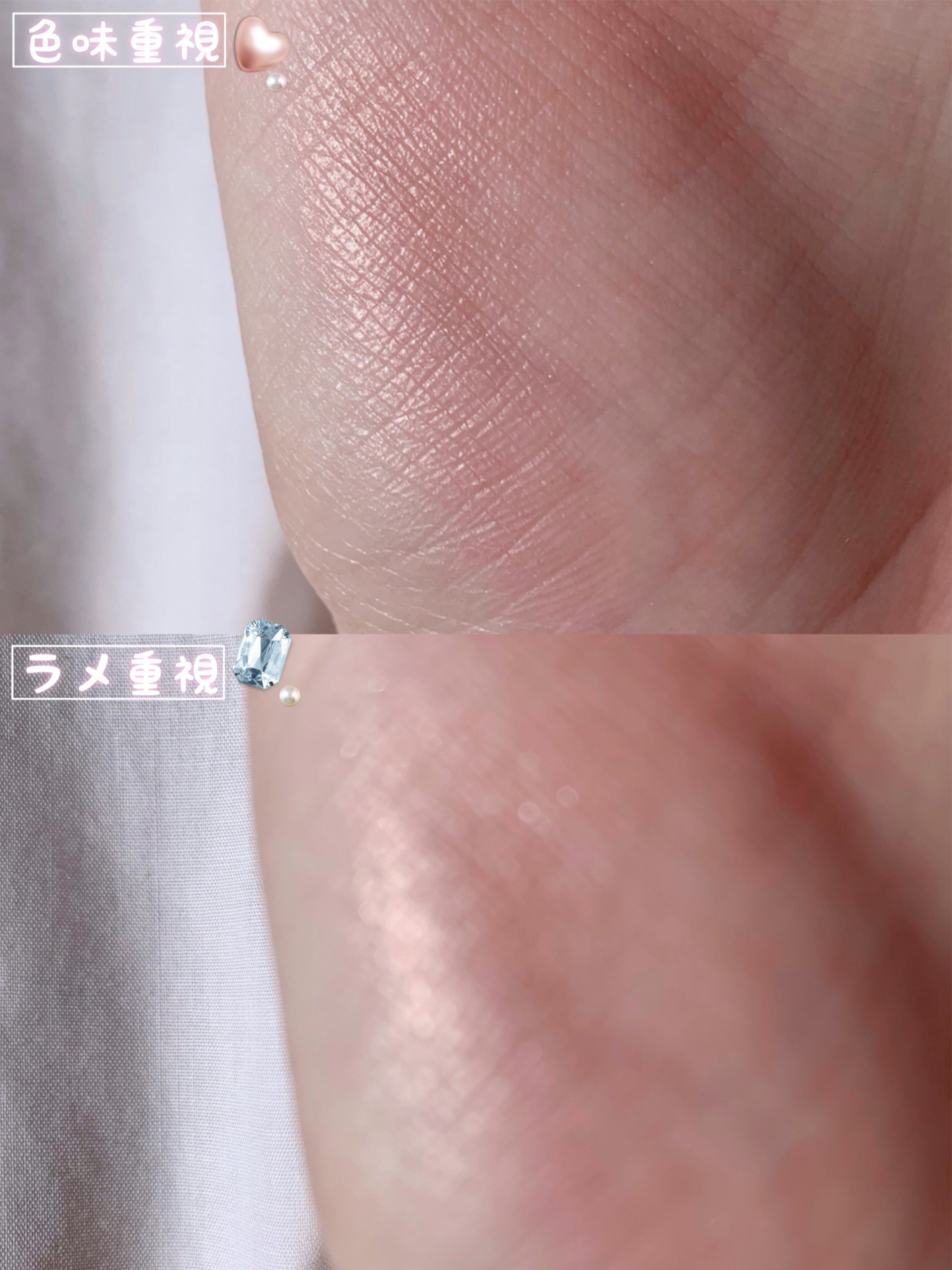細かめのラメがぎっっっしり詰まってて 少量のせるだけでもつやんとしてくれるから 単色でハイライトとしても使えるよ💓 薄く涙袋にのせて血色感のある涙袋にするのがかわいくておすすめ🫶 うさぎみたいな、泣いたあとみたいな うるうるした目に見せてくれるよ🥹 この子をのせるだけで一瞬で透明感爆上がりしてくれるカラー🥰 ぷっくぷくの涙袋がつくれて 1色だけでも買うのおすすめしたい🤤💓 万能使いできるのはGT01クリスタルダズル かわいい系メイクが好きな方はGT02フルーツポンチ ブルベさんとか透明感がほしい方は GT03アイシーライラックがおすすめだよ🙌 どんな組み合わせしてもかわいいけど とりあえず1つは このグロッシータイプを買っておくと いろんなところに使えて時短にもなるし このラメ感は1度手に取ってもらうと かわいさがわかるはず…💓