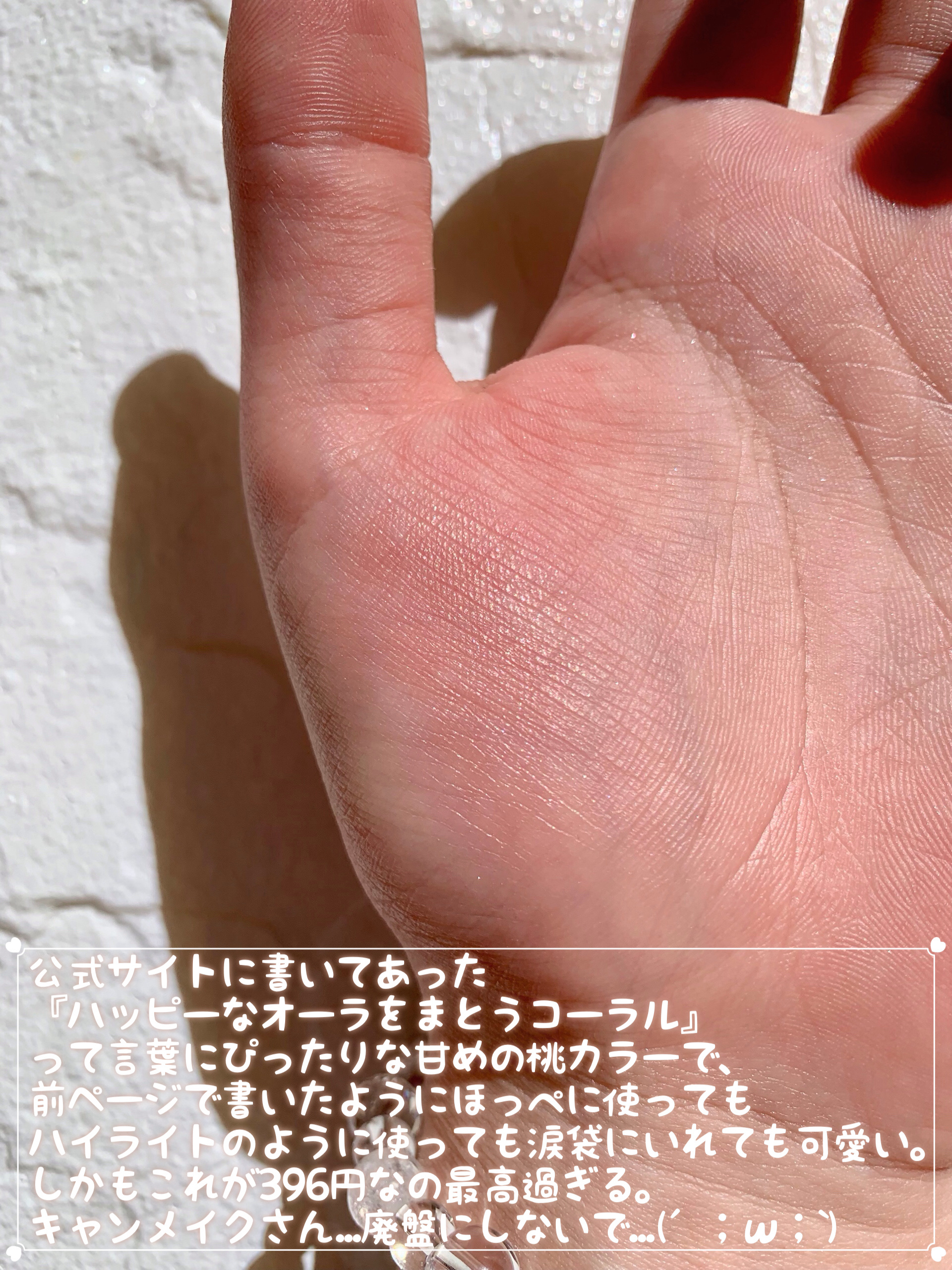 外出先で、チークを忘れたことに気がつき、急いで1番安いものを買いました!なんですけど、これめっちゃやかったので、みんなにお勧めします!結論からいって、どの肌トーンの方でも使えます‼︎400円しないとは思えないクオリティ✨✂【使った商品】キャン...