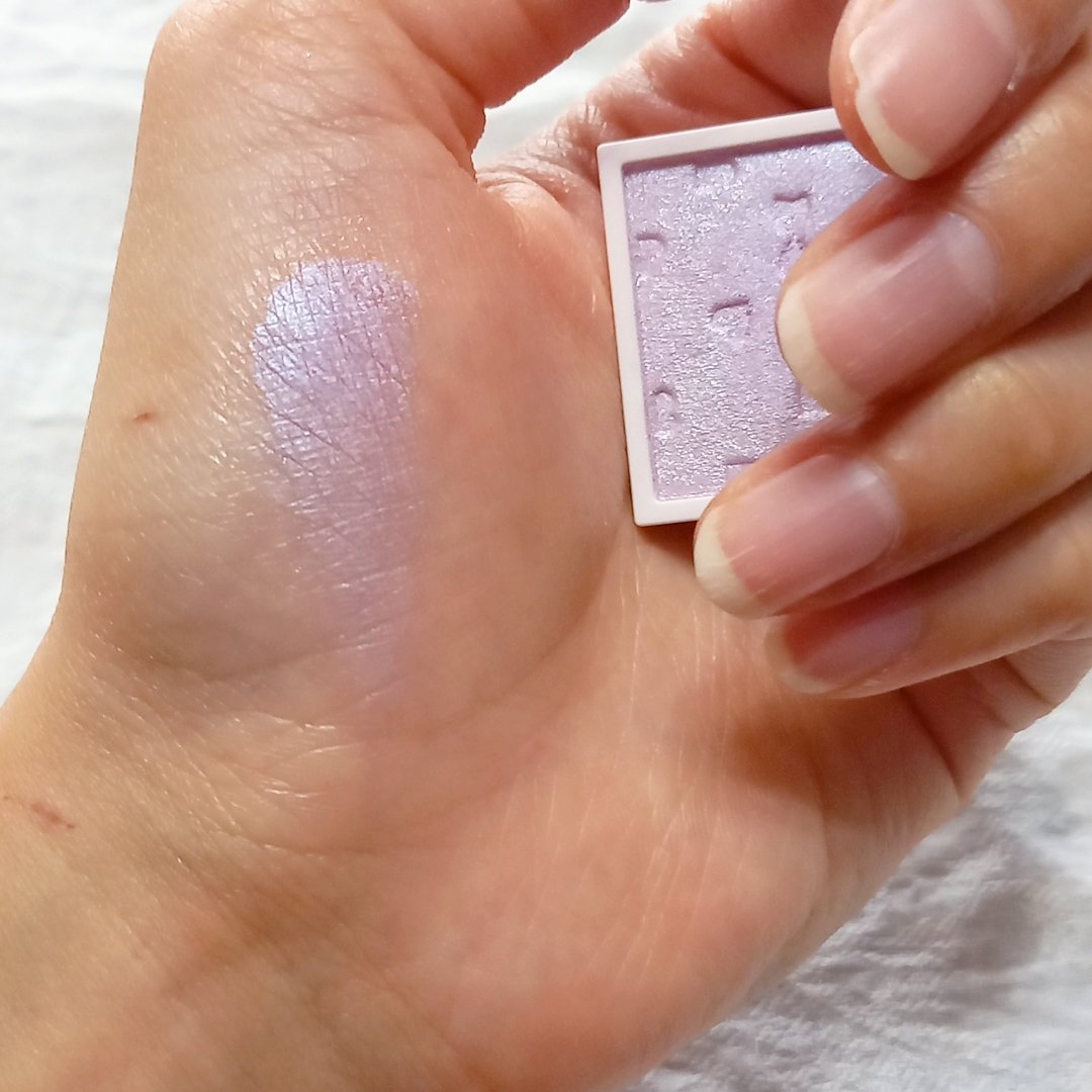 白みがかったパープル 透明感がでて 儚いメイクやちゅるんメイク、 色素薄い系メイクにもってこい パール感が強く出るグロッシータイプ パープル,青,シルバーパール 発色は良い プチプラでこの透明感! パール感がキレイ 若干粉飛びしやすく密着力が低め このパープル感に一目惚れし 衝動買いしたアイテム 青ラメ好きは見逃せない!!! 白みが強く出てきた パール加減はとても良く キレイめで儚いメイクをする時に 使いたくなる ブルベさんはとくに優勝する輝きで ひとつ持っていて損なしかも??
