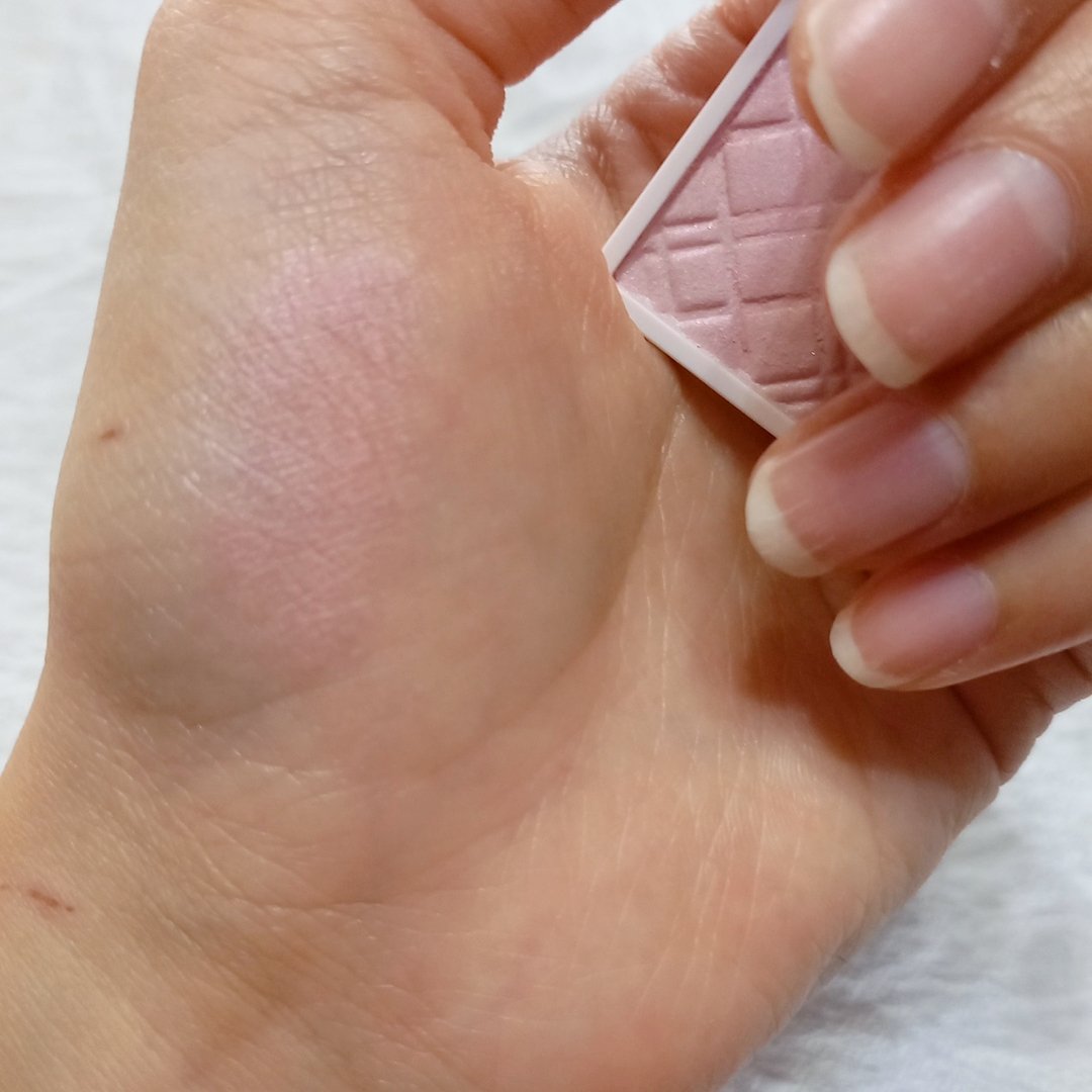 この可愛さを1色ワンコイン以下で買えるの嬉しいですね。 ピュアエンジェルはシルバーパール配合の淡いピンク。ギラギラしないので上品に仕上がり、ベースカラーとしても優秀です。 発色も柔らかくて指でササッと塗っても綺麗に塗れます。 黄みもくすみも苦手なライトサマーにオススメ。まぶたが腫れぼったくならないピンクなのでこれにブラウンのアイシャドウで締め色を足せばメイクが完成します。