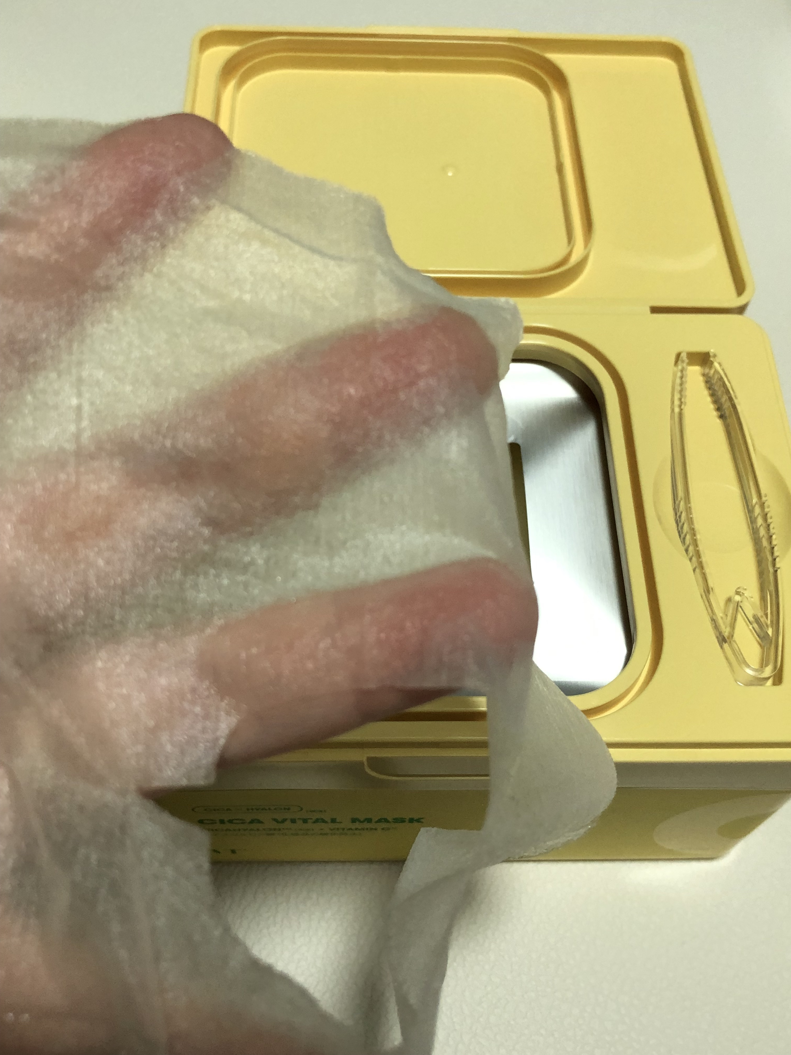 使い切りレビュー💛💛/VTシカバイタルマスク使い切りました👐🏻✨だいぶ前に購入した箱パック!今月も初日から無事に箱パック使い切りました👐🏻✨エッセンスひたひたで、さっぱり潤ってくれるよう✨朝のメイク前に使っていました👍🏻✨長期保管してたからか、開封した瞬間蓋が壊れてたww#VT#韓国コスメ#韓国スキンケア#1日1CICA#使い切りレビュー