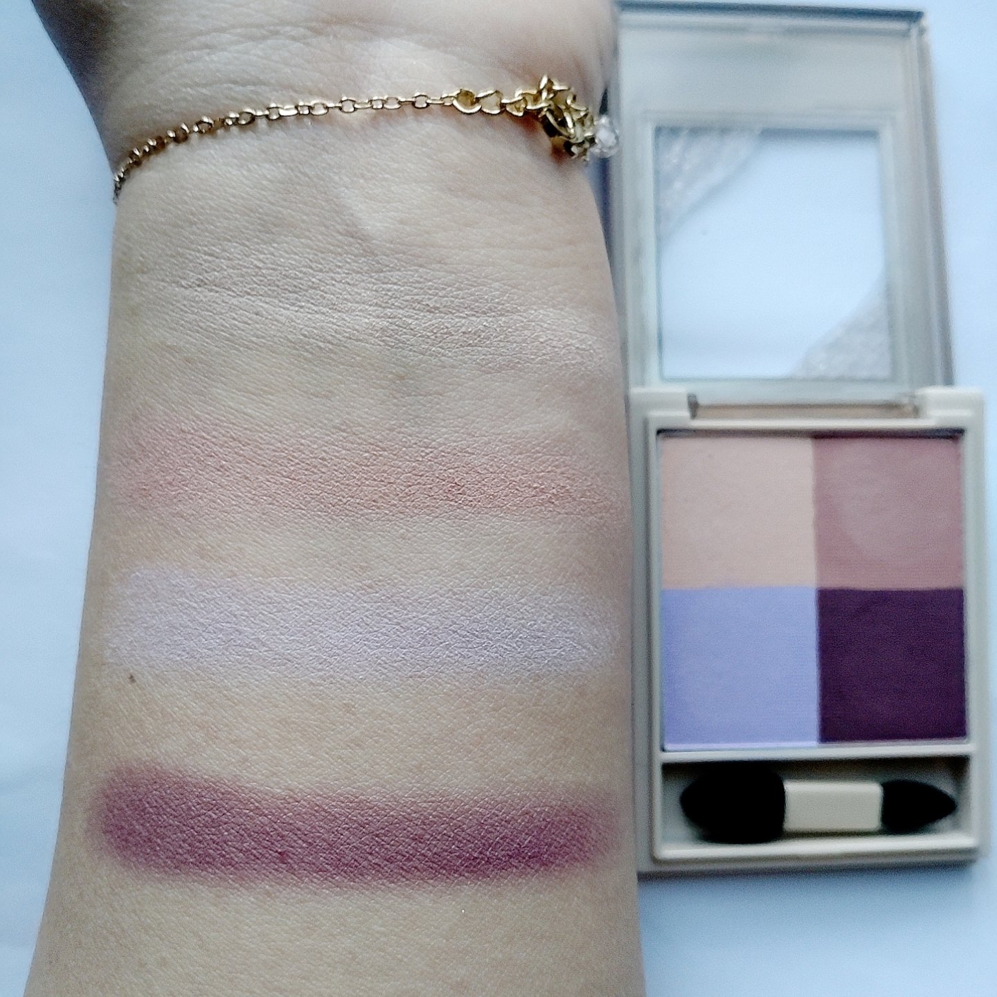 ⭕️ふんわり透けるマットな質感、重なる立体感。 ⭕️ムードな目もとを叶える抜け感アイカラー ⭕️しっとり密着透け感マットアイカラー ⭕️左上スキンリセットカラーでまぶたのくすみを払拭 ⭕️公式では、指塗り推奨 ピンクベージュ、モーヴピンク、青みラベンダー、モーヴブラウンからなるパレット 指塗りで粉質の良さを実感 派手に見えるけど発色は穏やか