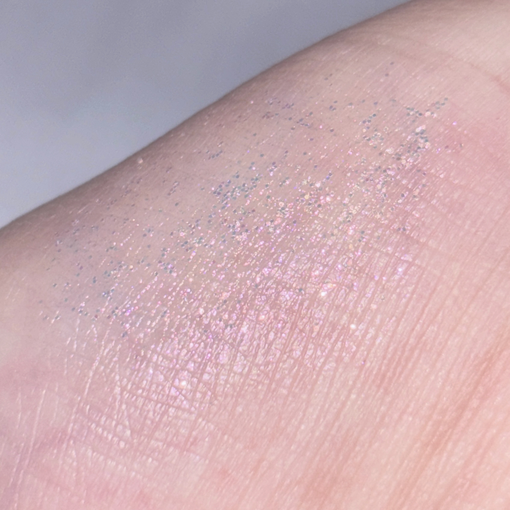 まず 大優勝なパッケージは ロココ風の彫刻がとっても心くすぐります ⸝⸝ キャップの上のバレエシューズが愛らしい … 発色は とってもいいです 驚きました 少し塗っただけでも とってもきらきら輝くので( 伸ばして馴染ませてもきれいでした ! ) この色味は シルバーベースにピンクの細かなラメがはいっていて ほかのものよりは 小粒です さらに 落ちにくくて ガシガシこすってもほのかにきらきら ⋆* していました 暗いところでも 明るいところでも 角度によってもきらきら 色も輝いていたのでまるで星のようだと 感動しました 🥹 とにかくきらっきらしたい方は ほんとにおすすめです