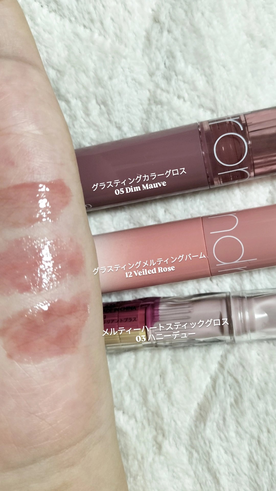 ブルベさんの秋冬リップとして使える低彩度くすみカラーちゅるリップ3選です!#ブルベ#秋冬#くすみ#グロス#バーム#rom&nd#フロレット#はじめての投稿