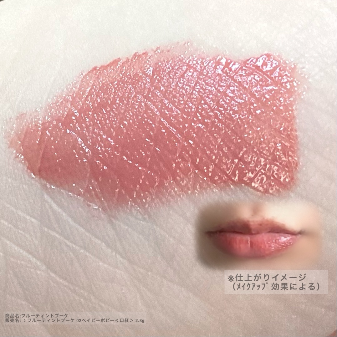 #RICAFROSH(#リカフロッシュ)【#フルーティントブーケ/02#ベイビーポピー】透明に輝く光沢感とみずみずしい発色が長時間続く、本気のツヤリップしっとりとした付け心地で、発色がきれい02ベイビーポピーは、やさしく包み込むようなモーヴフレンチピンクで、ふんわりしたピンクがとてもかわいいし唇がうるツヤになる色持ちも良くて落ちにくいし、唇がしっかり保湿されるのも良い🙆#PR#ティント#リップ#リップティント