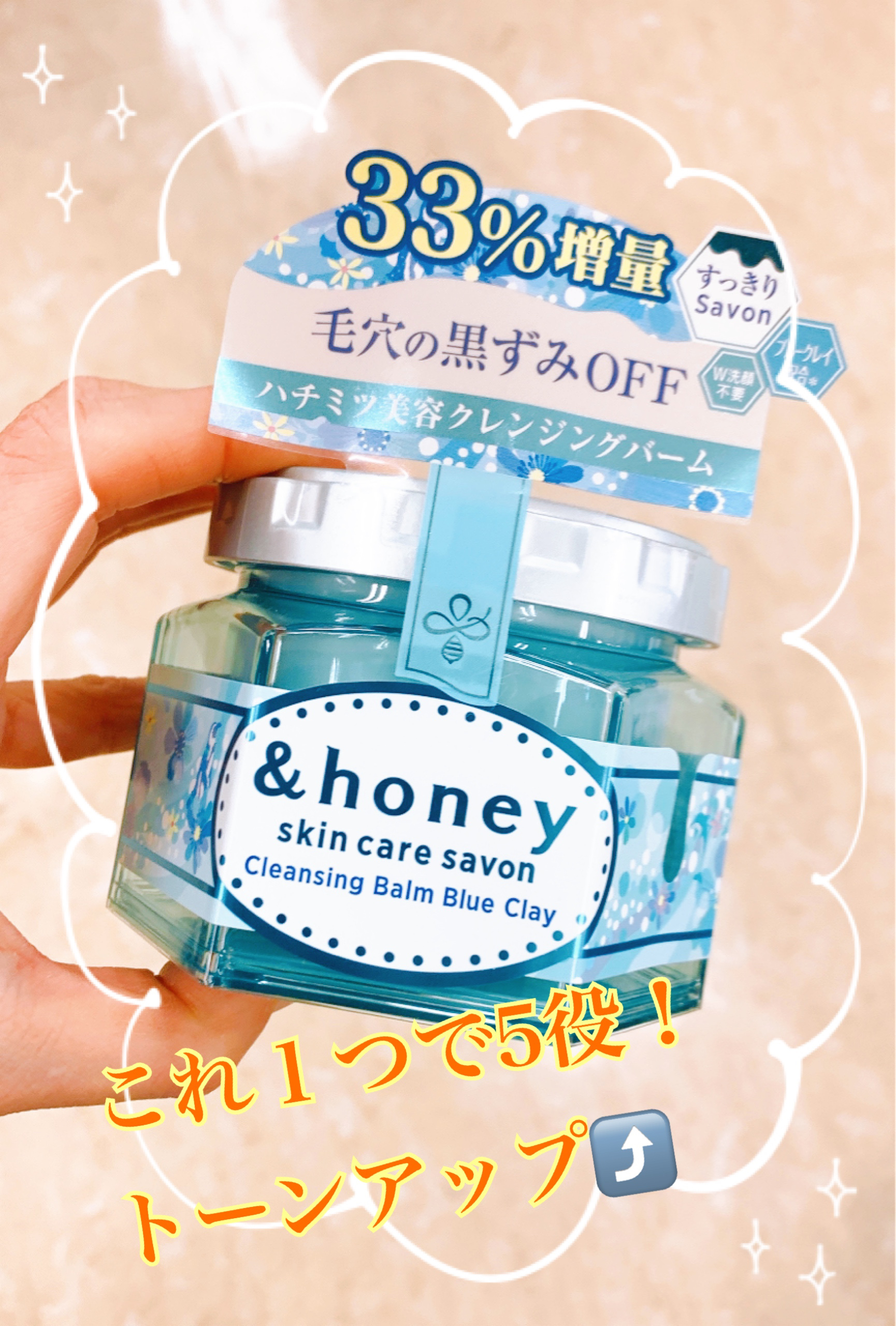 吸着×保湿のいいとこ取り&honeyサボンクレンジングバームブルークレイ美容的な魅力として⬇️•ブルークレイで毛穴すっきり皮脂や汚れを吸着し、メイクオフしながら毛穴ケア。•とろけるバームで摩擦レス肌にのせるとオイル状に変化し、やさしくメイクを落とす。•洗い上がりしっとり&honeyならではの保湿力で、クレンジング後もつっぱらない。•サボンの香りで癒しの時間清潔感のある石けんの香りが、毎日のクレンジングを心地よく。•W洗顔不要で時短忙しい日でもこれひとつで完了。とろけるバームでメイクオフ🫧ブルークレイが毛穴汚れを吸着して、洗い上がりはしっとり感があります(*^^*)パケが&honeyらしく可愛くオシャレ💃🍯#&honey