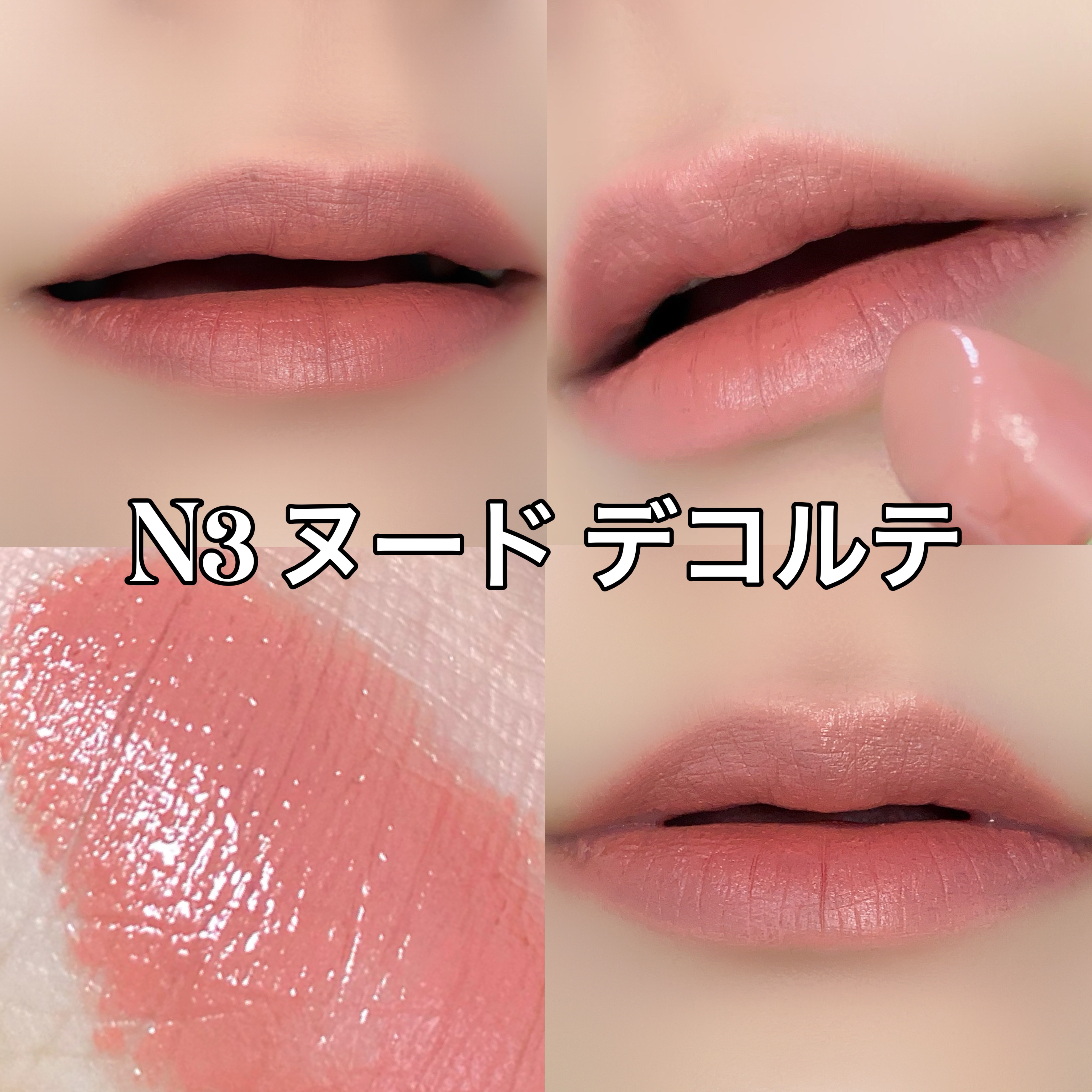 N3ヌードデコルテ 黄みよりのまろやかウォームベージュ ➡️イエベ春におすすめ。ちょっと昔流行ったベージュリップを思い出すようなカラー。 N5トリュビュートヌード 淡く柔らかなピンクヌード ➡️イエベ春&ブルベ夏におすすめ。優しいピンクベージュお探しの方におすすめ。aespaカリナのお気に入りカラーらしいよ。 N8ブラウスヌ 赤みを含んだピンクベージュ ➡️秋冬にピッタリ!!この絶妙な赤みが血色感だしてくれる。万人ウケカラー。平野紫耀使用カラー。