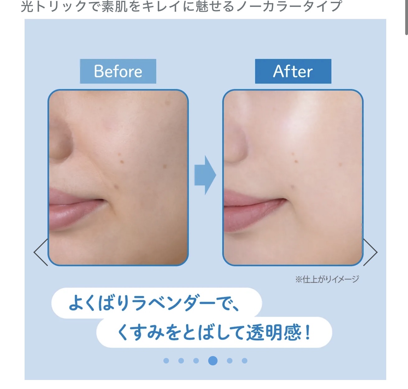 透明感のある立体ツヤ肌になれる、スキンイルミナイザー効果有り⭐️ つけると、肌がキレイに見えます!! 実際つけてみると、ちゃんと透明感がでる!! そして、自然。