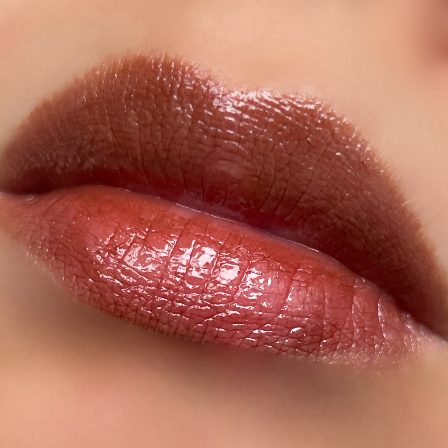 チョコレートのような温かみのあるブラウンに少し赤みがプラスされた色味で肌のトーンを選ばず、自然な血色感を演出★ 柔らかいテクスチャーで快適なつけ心地♪ しっかり保湿もしてくれるから乾燥知らず‼︎