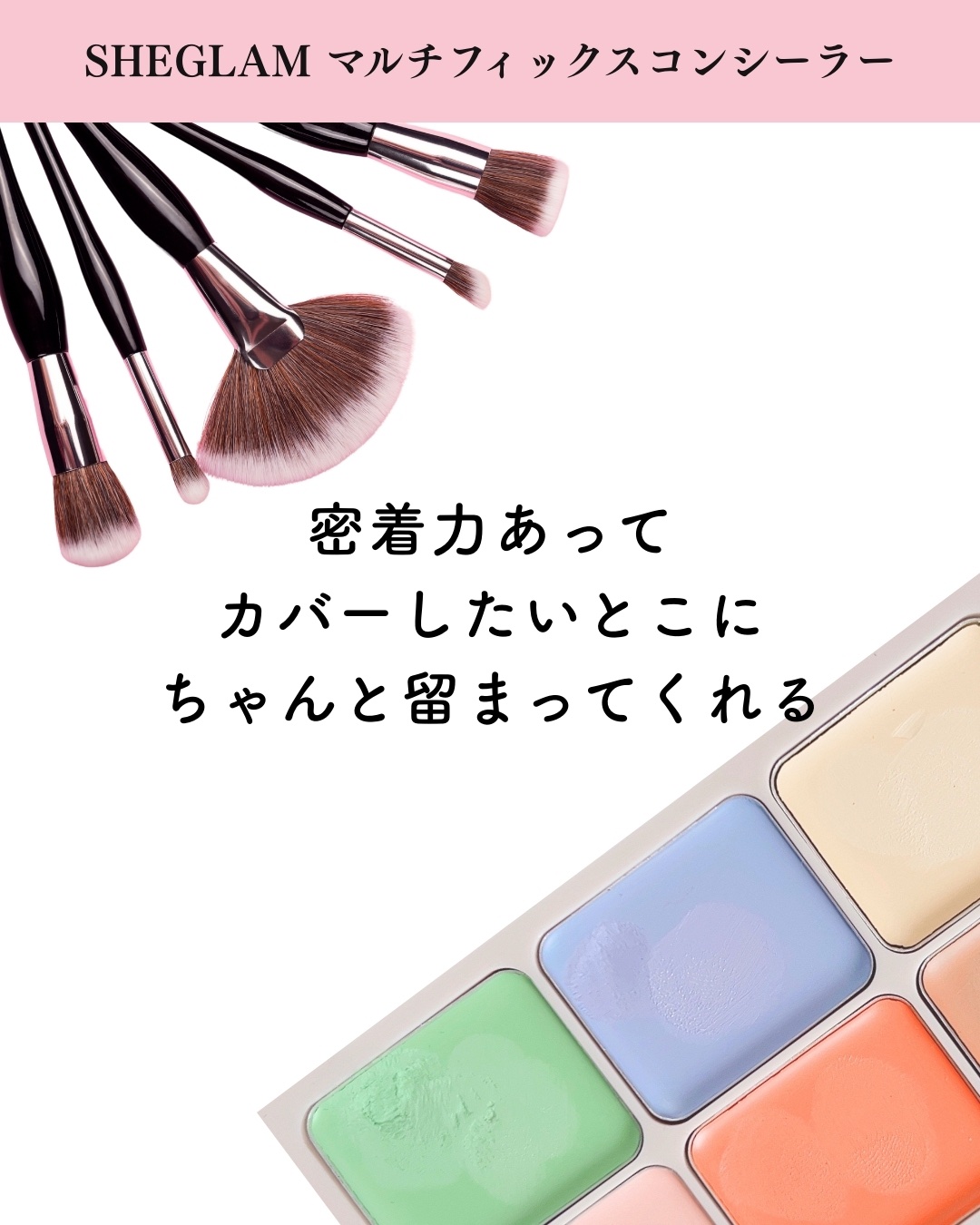 初のSHEGLAMで少し品質に不安がありましたが肌荒れも起こらず、とても滑らかなテクスチャーで扱いやすかったです。 個人的にはグリーン、ブルー、イエロー、ピンクが使いやすかったです。 NYXの多色コンシーラーが買いづらくなってしまったので、こちらに乗り換えるのもアリかなと思いました◎