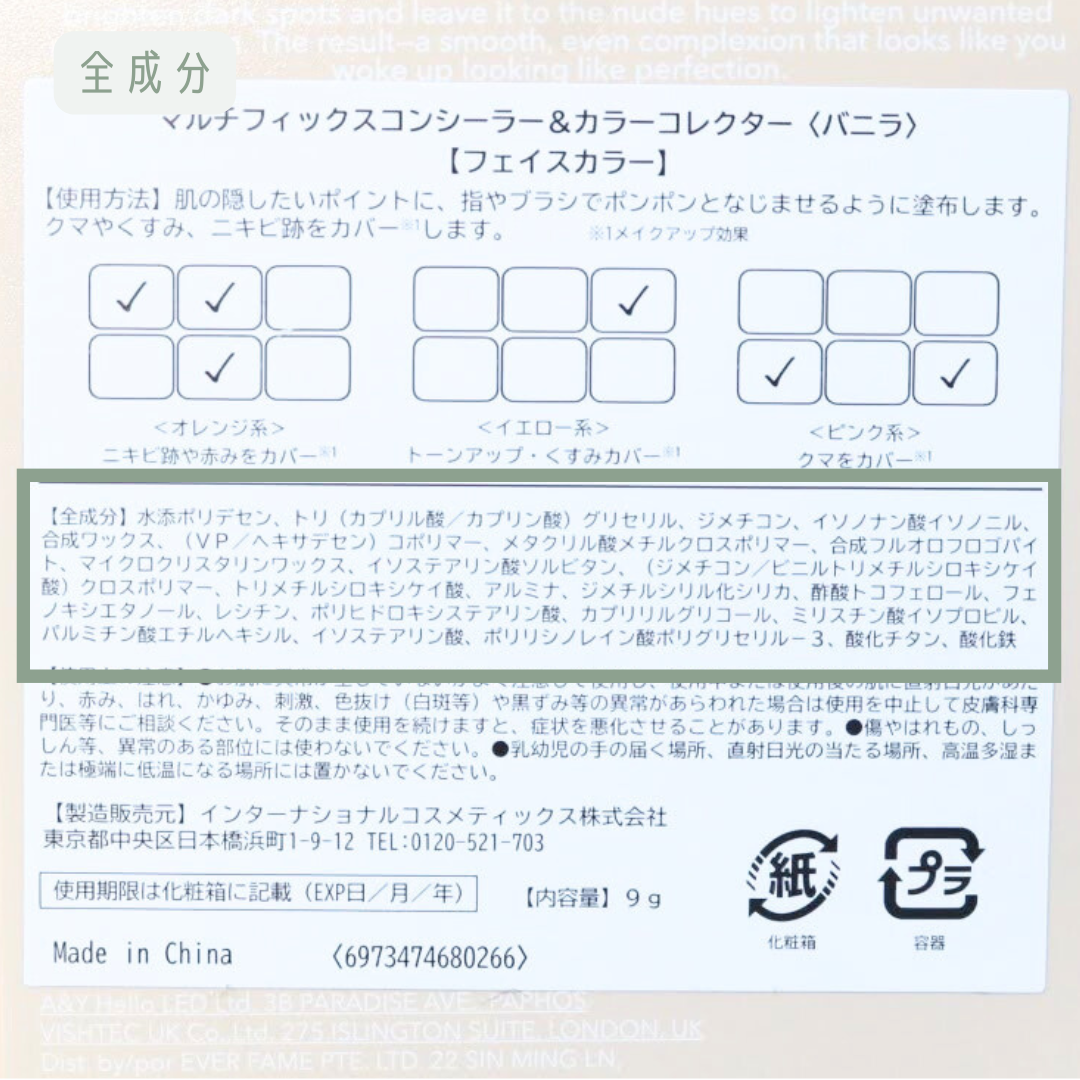 商品詳細情報マルチフィックスコンシーラー&カラーコレクター バニラ