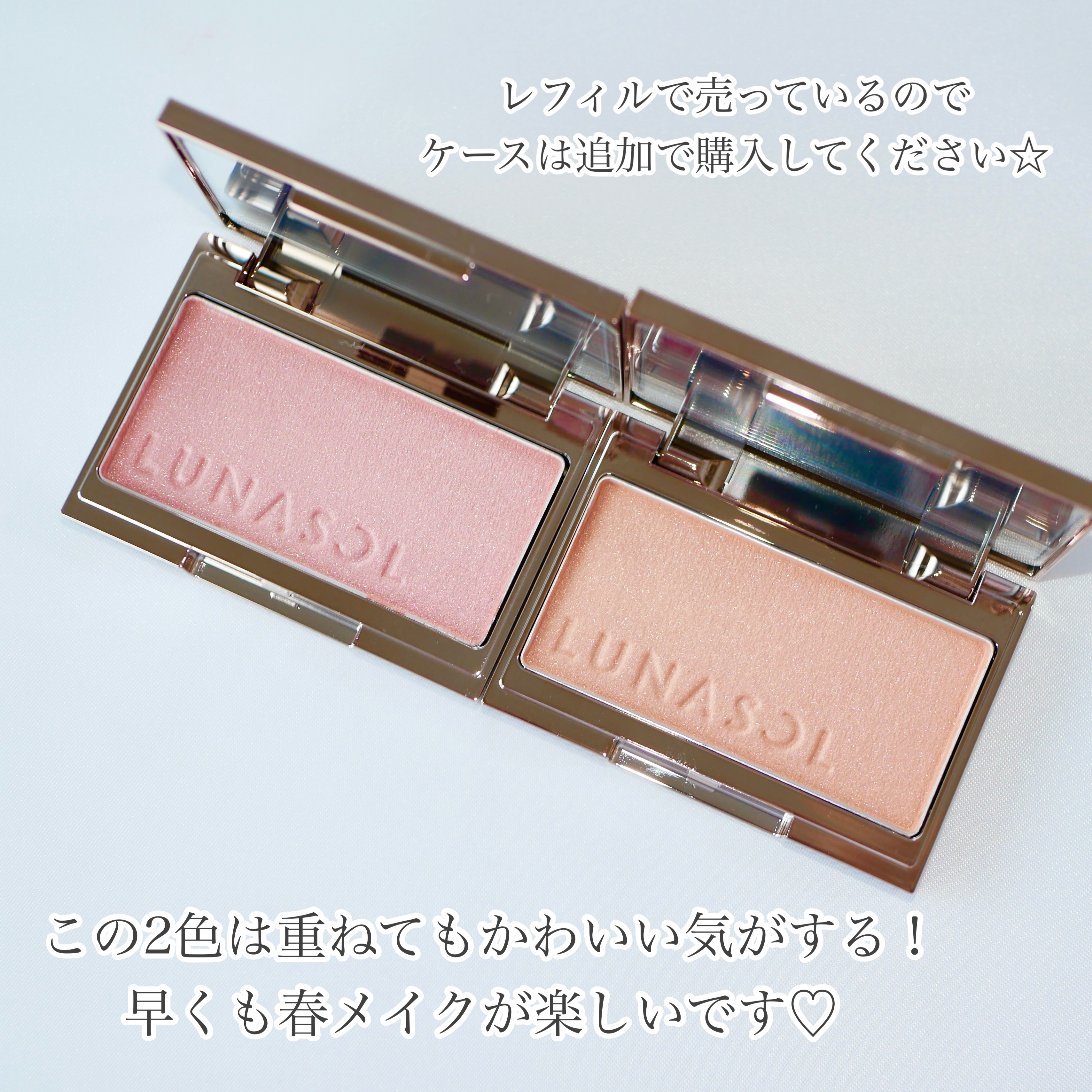 【LUNASOL】2024.2.9全国発売/✔︎#カラーリングシアーチークス(グロウ)04ミスティベール05スプリングブレスルナソルの春コレ先行発売でGETしました!今回はチークの2色をレビュー!【04ミスティベール】ハイライトとしても使えるベージュカラー!重ねていくとほんのり血色感がでて頬がツヤツヤに!目元や口元が主役の時に活躍する万能ベージュ!レイヤリングして立体感を出したい時にもピッタリ!【05スプリングブレス】微細なパールでツヤツヤに仕上がるコーラルカラー!スプリングさんにおすすめのコーラルピンク!春っぽいチーク探してる方に推したい!この種類のチークは重ねるほど血色感が出てツヤも増すのですがナチュラルにも仕上げられるから使いやすいです!ちなみにケースは別売りです!私は1つケースを持っていて持ち運ぶ場合はそこに入れていて普段はこのレフィルで使っていますw頬に赤みがある民でも使いやすいカラーリングシアーチークスは推しアイテムです!#カラーリングシアーチークスグロウ#ルナソル#コスメ購入品#春コスメ