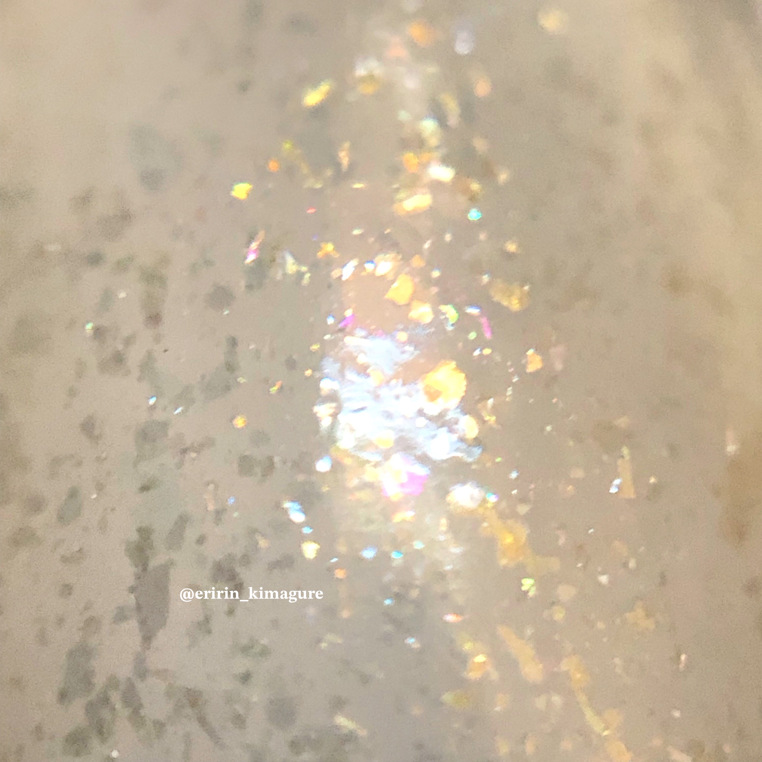 ホリデーコレクションらしいキラッキラに輝くゴールドカラーのトップコート🧡✨ ギラギラしすぎない上品なニュアンスチェンジが出来、ゴールドのパール感のあるグリッター仕上がりで、指先をドレスアップしてくれます😍💕 メインカラーはゴールドですが、角度によってピンク色やグリーン、ブルーのようにも見えるオーロララメで 細かなラメと乱切りホロのミックスになっています💖