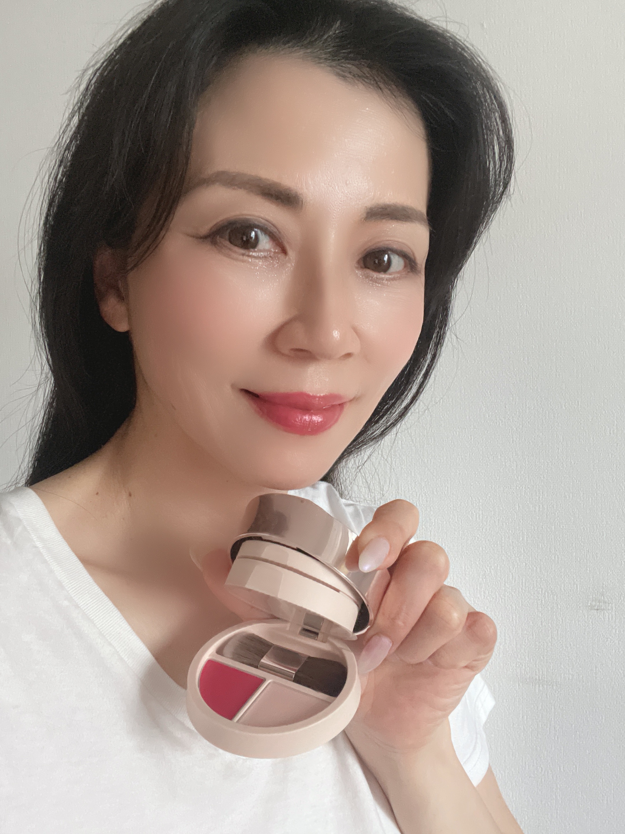 届いて気分が上がったのはまず外箱ボックス…🌞 華やかなボックスに、 シックなマットのピンクベージュのコンパクト🩷 ハイライト(これやばいカワイイです✨😍) に、チーク&リップの鮮やかなピンクのクリーム🩷 ハイライト 薄ピンクに見えますが、肌の上ではラベンダーに 発色します🪻 クリームチーク&リップ 激しいピンクに見えますが、塗るととても自然に😇 ベタベタしないので、チーク、リップだけでなく アイカラーにも使えます😍 冬〜春はピンクがトレンドになるので 自由自在に使えるなと感じてます🩷