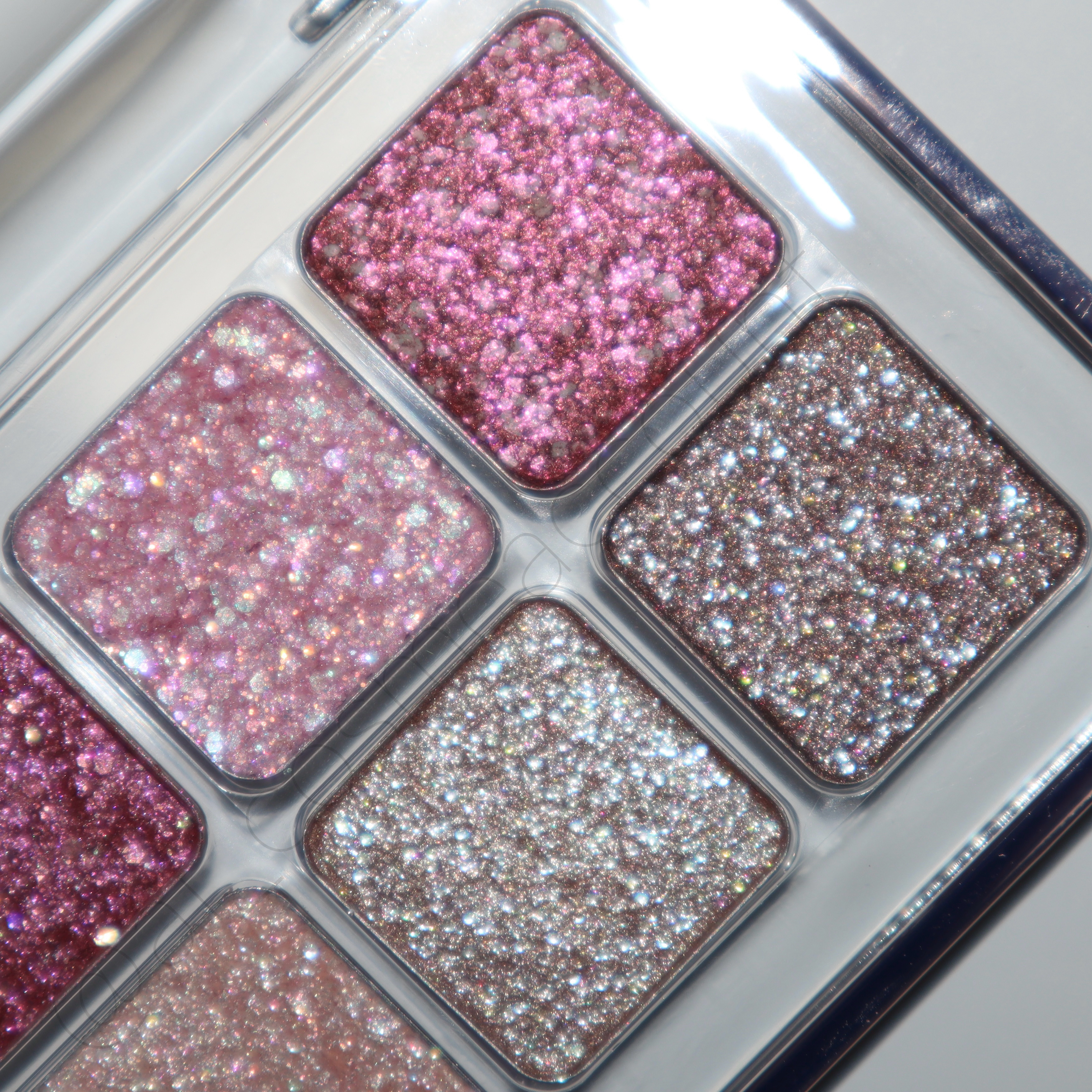 か、かわいい!!!!!! ほぼピンク🩷 そして全部ラメとグリッター🌟 さすがクリオ、しっとりとした粉質で発色も良くてすごく使いやすい◎ それにラメが綺麗😍 使う前に沢山写真撮った笑 色々な使い方しよ〜っと☺️🤍