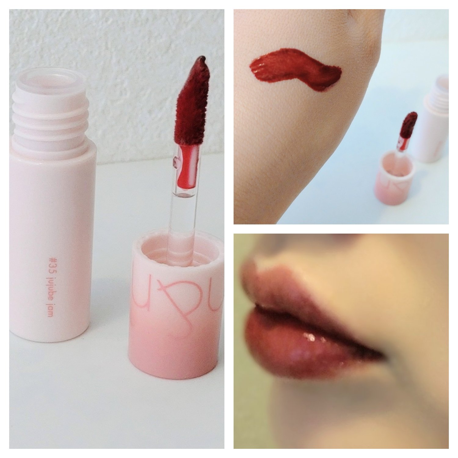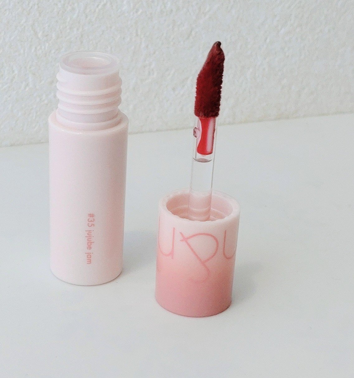 ロムアンドが初めて完全日本向けに開発した日本限定の【ブルームインカバーフィットクッション】と【ジューシーラスティングティント】の日本限定カラーが可愛いミニサイズになって登場したよ!! 既存タイプと比べても小さい!パフも小さくて可愛すぎる😍 ジューシーラスティングティントは日本限定カラーの 35 ジュジュブジャム!!レッドブラウンでエレガンスなカラー!落ち着いてるカラーだけど、存在感もしっかりあるカラーで秋冬っぽさもあって可愛い❤️