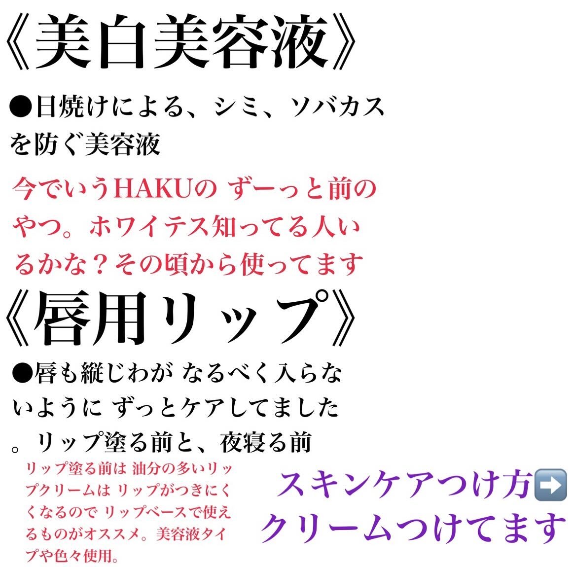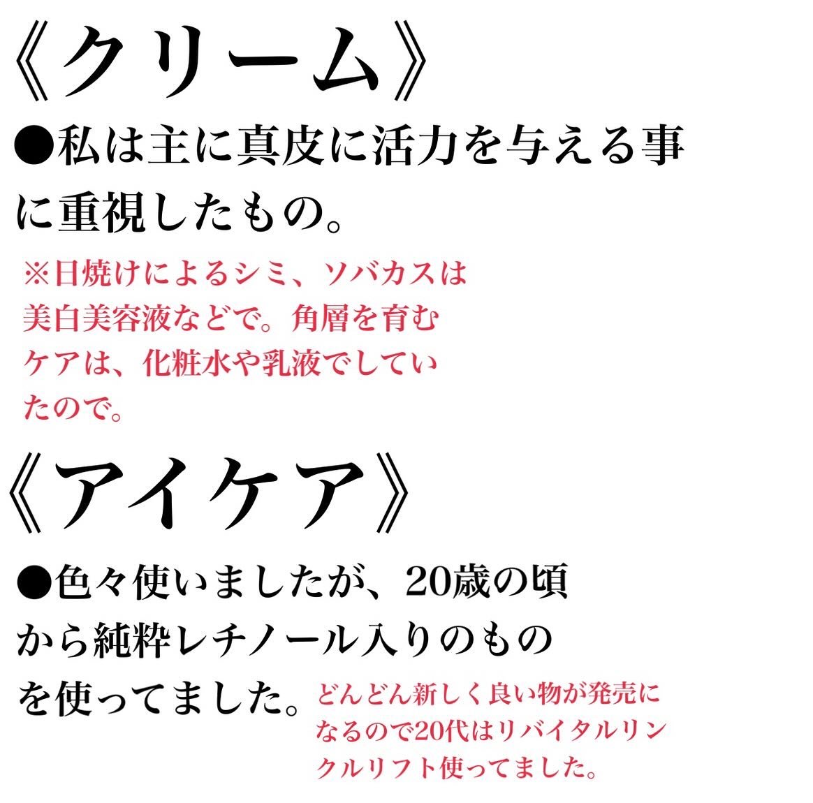 \ずっとなん十年続けて良かったスキンケア/ズボラだけどコツコツ長く続ける事が大切。⚠️最後に1番最近、使い始めたスキンケアを載せてます。《メイク映えは美肌から》美肌があってこそ、なので続けてた事をシェアします。高校卒業して美容部員になってずっと使い続けたスキンケアアイテム。●化粧水●乳液●クリーム●美白美容液●アイクリーム●唇用リップ📍特に目周りは皮膚も薄く敏感な部分で乾燥もしやすいのでアイクリームは若い頃から必須!📍唇も縦じわが入ってくるのでしっかり保湿。📍首のシワは、年齢とともに縦にしわしわーと入るのが老けて見えます。首の後ろもスキンケアをつけるのを忘れずに!《つける時のポイント》●乾きやすい頬からつける。●きちんと適切な量をつける。(少ないと乾燥する)●首にスキンケアつけるときはたるみ予防なのか、リンパを流すのか。●やさしく弱すぎず強すぎずのチカラ加減で、指の腹を使って。●私は最後に馴染ませるとき手のひらで軽く押し込むように馴染ませてます。スキンケアで有名なブランドのものや、色々使ってきましたが今は資生堂が多めです。今の一軍スキンケアは過去に投稿やストーリーに載せたもの、ハイライトに残してあるものを参考にしてください☺️(インスタグラム)《1番最近使い始めたスキンケア》●バイタルパーフェクションシュプリームクリームコンセントレートシュッと引き上げるようにハリつやある肌へ導く薬用クリーム。シミ、そばかすを防ぐ4MSKも配合。私は朝は、化粧水→美容液→乳液→日中用美容液なので、クリームは夜のみ使用してます。#スキンケアマニア#肌の悩み#肌のお手入れ#スキンケア方法#美肌レシピ#たるみケア#シワたるみ#透明感ある肌#若見え#若々しい肌づくり#美肌になる方法#miwaスキンケア#オイデルミン#ルセラム#アルティミューン#haku日中用美白美容液#アブソリュートエマルジョン#バイタルパーフェクション#目指せ毛穴レス肌