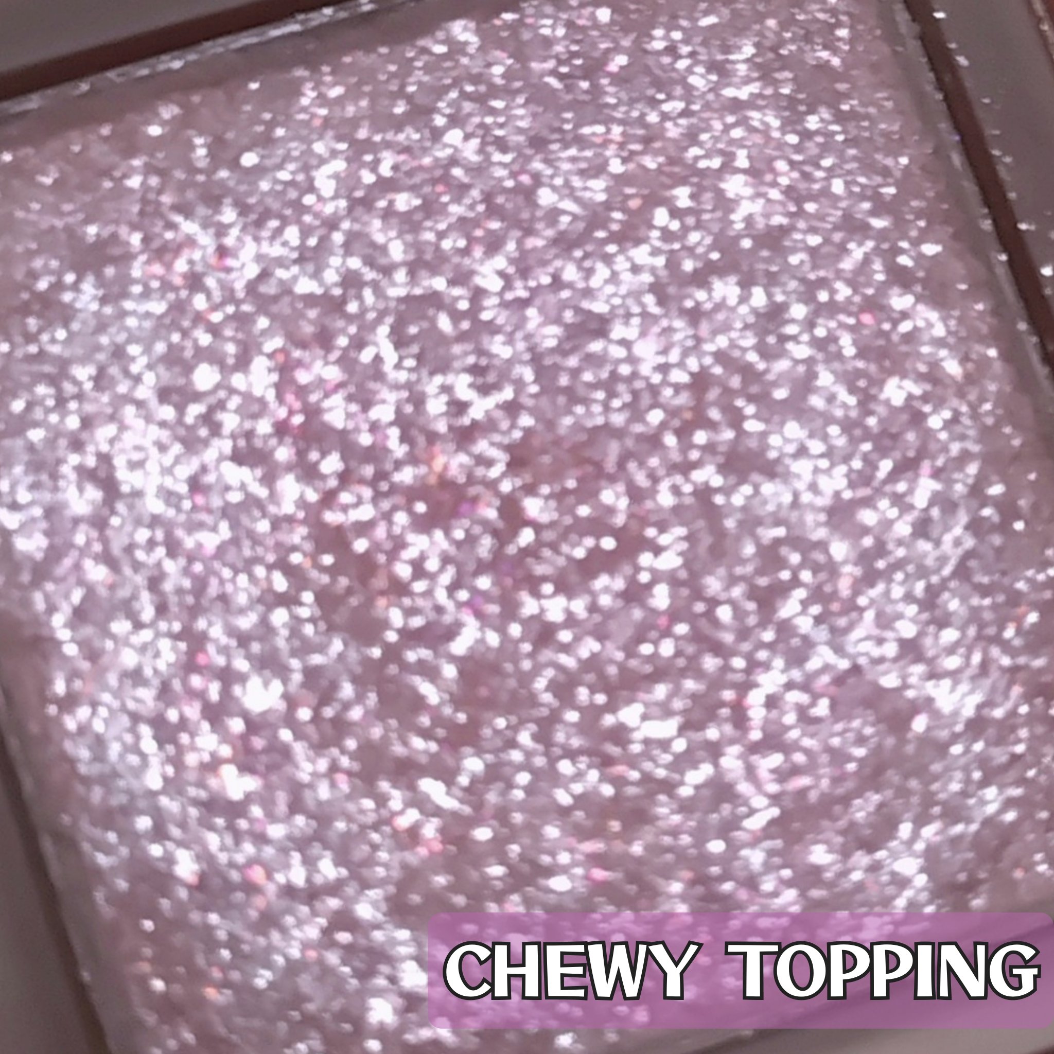 シマー:SMOOTH DOUGH (ふわふわ生地) マット:CRUNCHY WAFFLE (外パリっと中しっとりワッフル) グリッター:CHEWY TOPPING (もちもちトッピング)