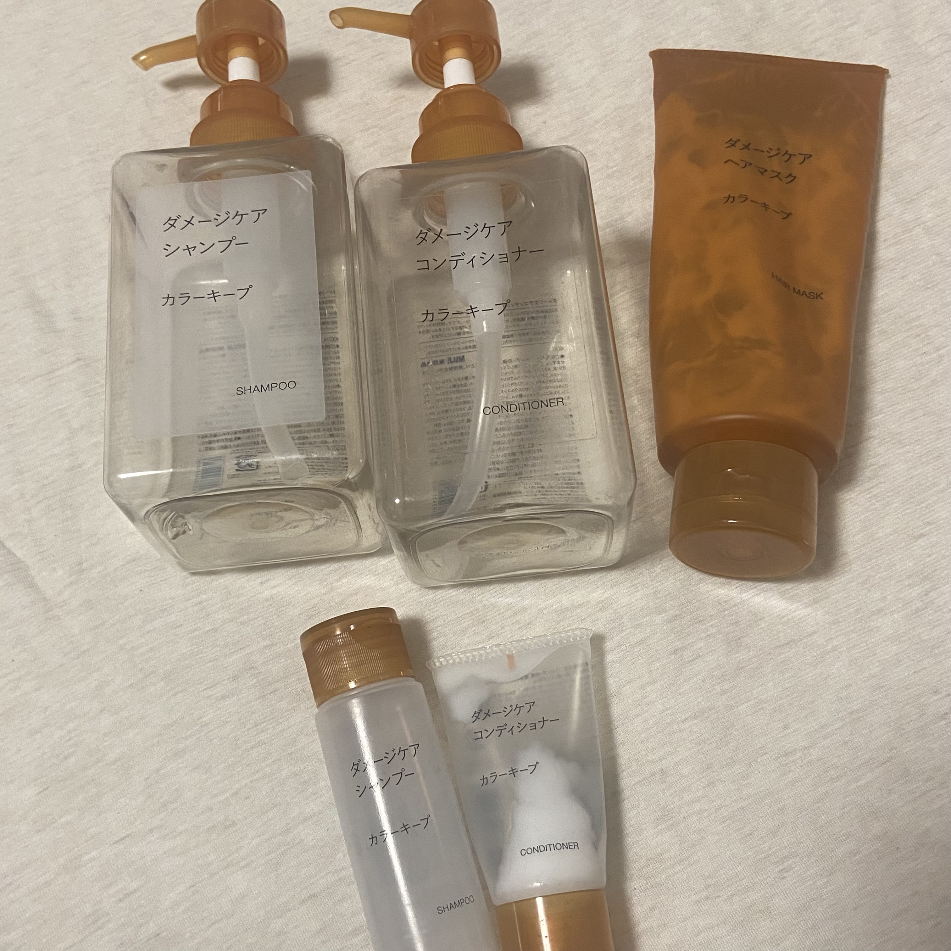 【無印良品ダメージケアシャンプーカラーキープ/コンディショナーカラーキープ】内容量:50ml/30g遠征ライブ用に買って、使い切った!!ヘアカラーもちょくちょくしたのでカラーキープのものをチョイス👍効果はともあれ、シャンプーの方が量が多いの助...