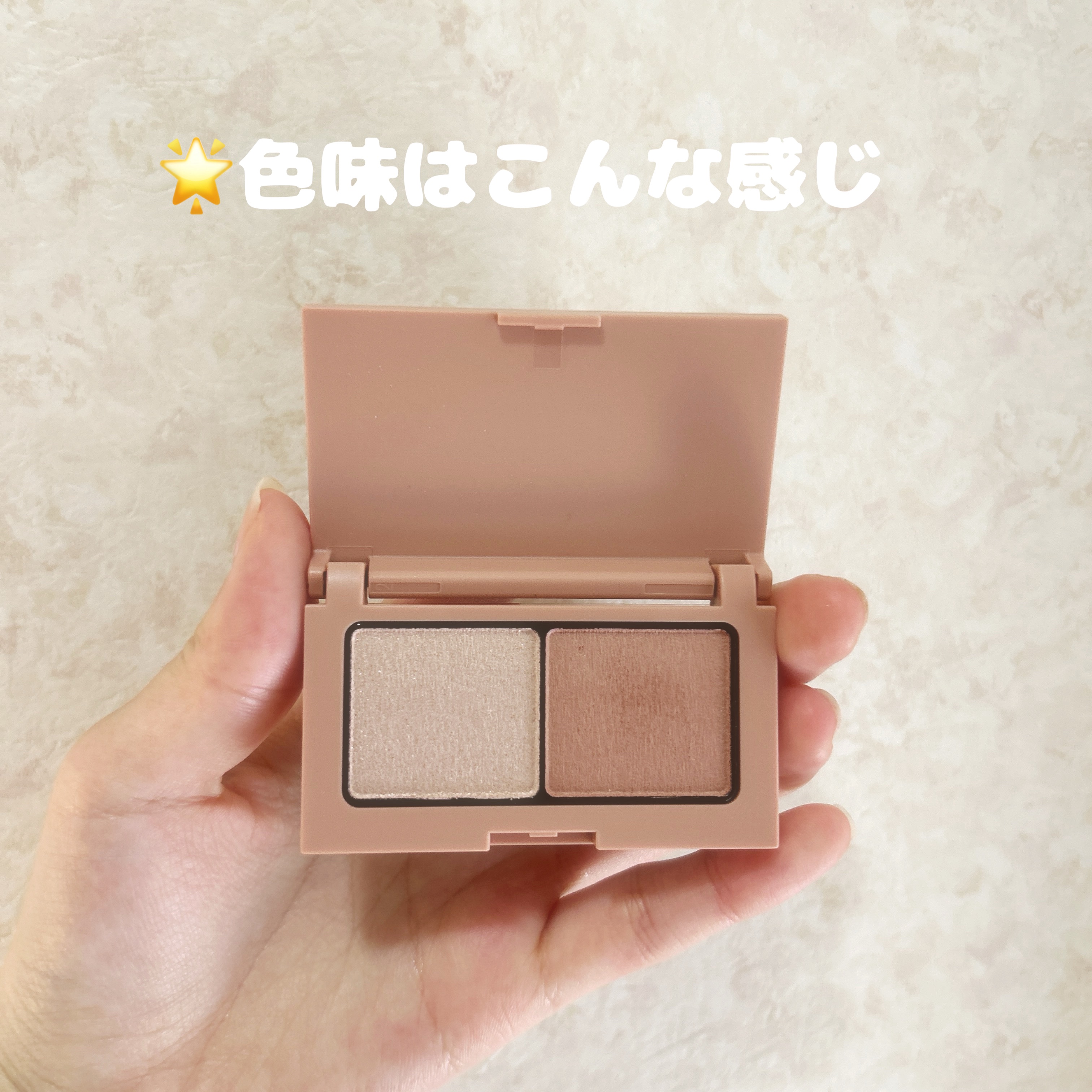 2色だけなのにめちゃめちゃ可愛く アイメイクが仕上がるのでめちゃめちゃ愛用しています! 2色を混ぜて塗るだけでもいい感じに仕上がってくれます。 時短メイクにはもってこいです!