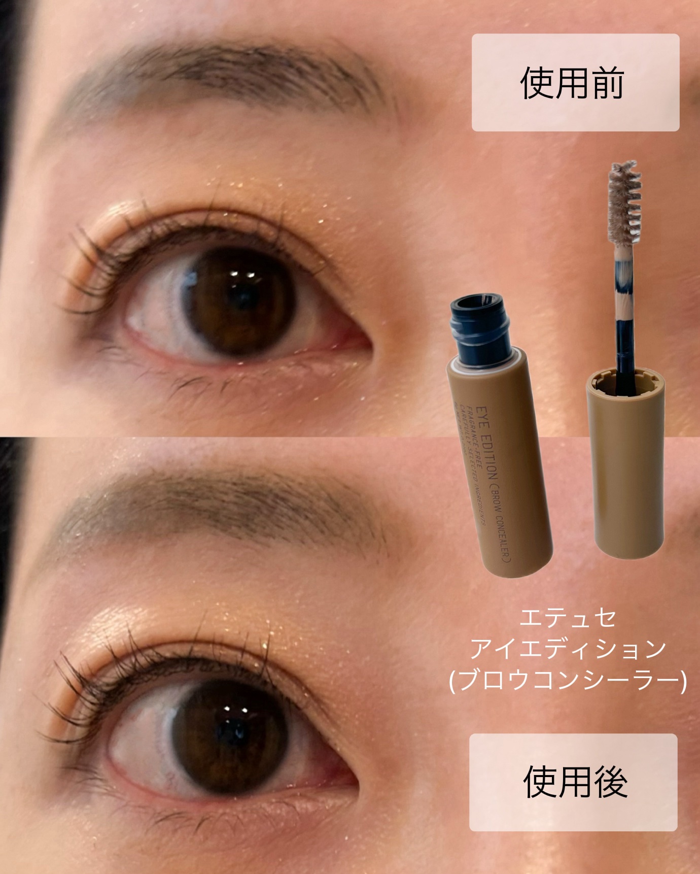 濃い眉さんに朗報! エテュセさんからご提供いただいた新作の眉用コンシーラーがとってもよかった🥹 4月に発売されたばかりのブロウコンシーラーは明るめのベージュカラーのアイブロウ用カラーマスカラ 自眉がしっかりとした毛質で、アイブロウメイクに手こずっていた私ははじめて使用した時「もっと早く出会いたかった!!」と嬉し泣きしました😹 濃いめの眉毛もちゃんと存在感を消してくれるので、アイブロウ難民さんには絶対使ってみてほしい!
