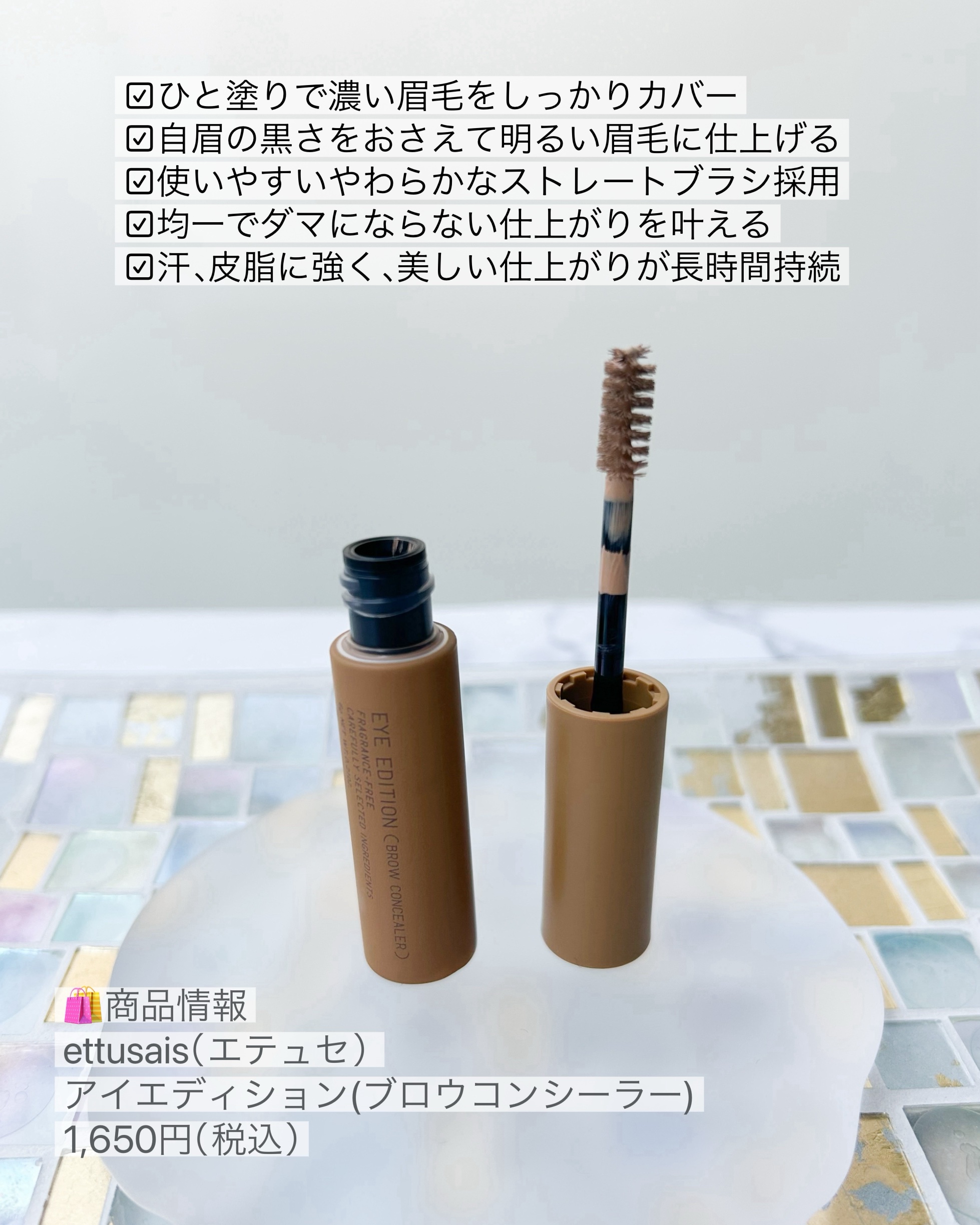 🧸エテュセアイエディション コンシーラーベージュ🤎黒髪のため流行りのホワホワ眉になるべく、いろんな眉マスカラを使ってきましたがいいものに出会えました!🧏🏻♀️昔は黒髪にはグレー眉!と思ってきた時期があり、濃いめの眉マスカラを使っていましたが、今時の消えそうな眉毛を目指していろんな眉マスカラを試してきました🌟私が求めている条件は、○ブラウン系ではなく、ある程度ベージュになるくらい脱色してくれるもの○赤味、黄味がでないこと○眉コンシーラー+眉マスカラ、と2本使いにならず、1本で完結するものでした!代表的なものでいうと、キャンメイクの眉コンシーラーは脱色力が高すぎて、kissのうす眉メーカーはちょっと塗りにくかったです💦そんな時に出会ったエテュセは、ブラシが小さいので塗りやすく、絶妙な色味でお気に入りになりしまた👏⬇️公式によると⬇️💐毛流れ感じるツヤ質感アッシュ系ニュアンスカラーの眉マスカラ(ツヤ質感は正直よくわかりませんでした...)💐透明感と柔らかさを演出するアッシュパール配合。毛流れを出してしっかりキープするのに、ごわつきのない感触。💐眉毛に塗りやすく、地肌に液がつきにくい「極小カーブブラシ」採用。💐ウォータープルーフ汗・皮脂・こすれに強く、つけたての仕上りが長時間持続。💐美容液成分配合 毛髪トリートメント配合塗る時にテクニックいらずでささっと塗れるのでこれからも重宝したいと思います🫧#エテュセ#眉毛マスカラ#眉コンシーラー