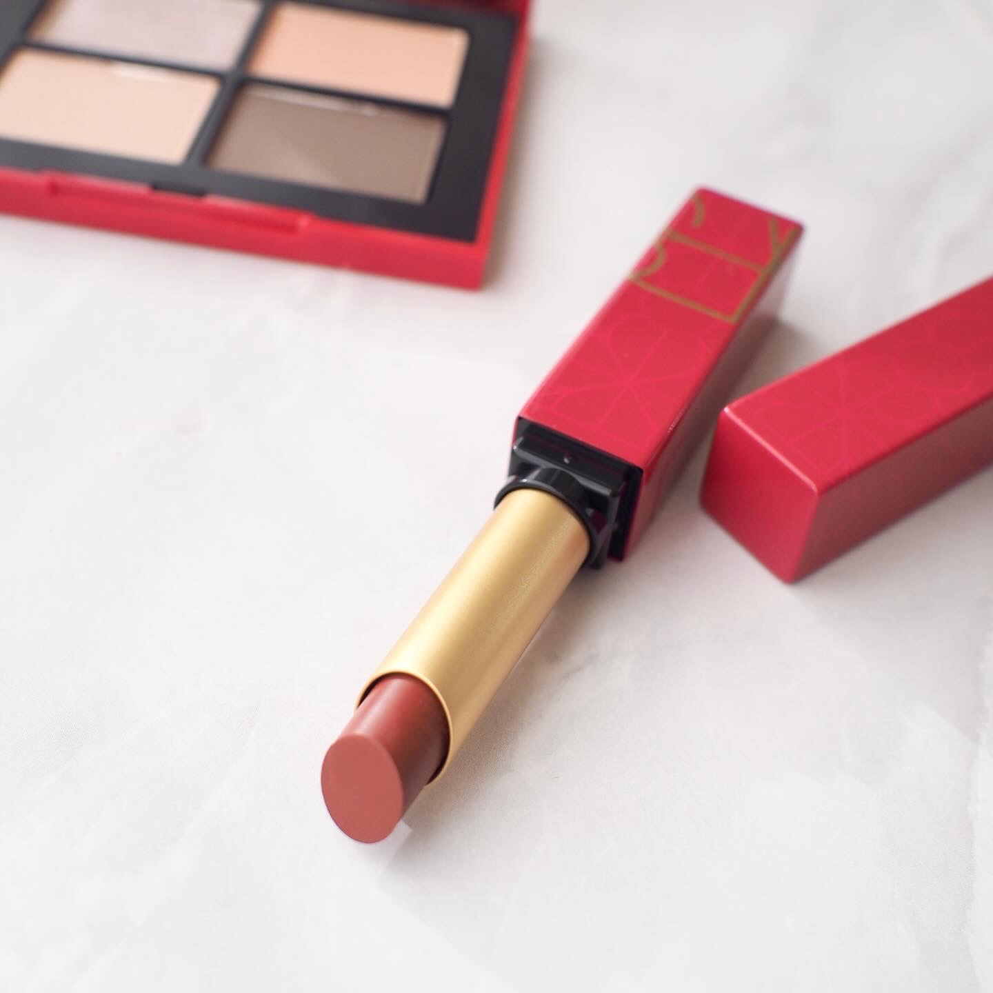 マット質感のニュートラルなベーシックカラーに、シャンパンゴールドの輝きがアクセントに!組み合わせ次第でかなり使えるパレットです。 パワーマット リップスティック 116A 公式では温かみのあるピンクブラウンカラーと表記されていますが、落ち着いたレッドのようなイメージです。赤リップに抵抗がある方にもおすすめ💄 しっかり塗ればスタイリッシュに、指でラフにポンポンと塗れば抜け感のあるおしゃれな印象になります☺️ すっかり定番化した、真紅のパッケージに着替えたNARSのお正月コスメ!