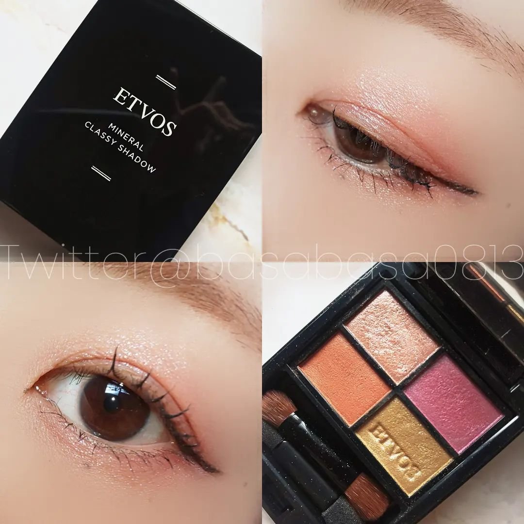 エトヴォスミネラルクラッシィシャドーイノセントブルーム ¥4,620✼••┈┈••✼••┈┈••✼••┈┈••✼••┈┈••✼さすがエトヴォス!発色良いよね!信じられる?…この高発色で、ミネラルコスメで、石鹸落ち、肌弱い人も安心してね!を謳ってるんですよ!こりゃ、メイク界の救世主だわ!肝心な色味は…上段はピンクメイク、下段はオレンジメイクという公式がブルベ、イエベどちらも可能パレットと紹介。ラメ2色、パール2色の鮮やか構成。2024春夏シーズンで出た限定パレット。✼••┈┈••✼••┈┈••✼••┈┈••✼••┈┈••✼(上段)左上は、ピンクベージュベースの強めシルバーラメ。右上は、温かみのある大人ピンクの高発色パール。(下段)左下は、温かみのある落ち着いた高発色オレンジ。右下は、ゴールドベースの微小ゴールドラメ。心踊るおもしろ配色のパレット。同じパレット内にあるから、ピンクとオレンジ混ぜてもぶつからずに良い塩梅で中和してくれる。イエベが左下オレンジ混ぜてピンクメイクしたり。右上ピンクベースに右下ゴールドラメで馴染ませたり…色々な組み合わせが楽しめる。✼••┈┈••✼••┈┈••✼••┈┈••✼••┈┈••✼しかし、カラーもののしっかり高発色故に、30代後半のアラフォーにはそのまま使うには少しハードルが高い点がいくつかある。(問題点)①馴染ませのベースカラーが無く、アクセントカラーが2色。②カラーメイクなのに、締め色になる色がないから不思議ちゃん顔になりがち。③ラメがどちらもしっかり強いので、欲張ると事故る。なので私なりの(解決策は…)①ベースカラーは他の白みがあるアイシャドウやハイライトでも良いから、右上or左下のアクセントカラーと混ぜて、肌色に馴染むように彩度を薄く下げて新たな色を作りベースとして乗せる。そのあとに普通にそのまま右上or左下の、色味を乗せると簡単グラデになる。②締め色ないなら、他の締め色アイシャドウを使う。③ラメ使いは…神経使って『1パーセントだけ、ほんの少しだけラメを下さい!』ぐらいの気持ちでラメ入れる。そのぐらいがさり気なくて自然かも。とりあえず、この方法で使えば使えてます。まだまだ使いこなせてないけど、他と被らないパレットだからこそ是非チャレンジしたいと思わせる心ときめくパレットです。何より色味が春で可愛い!幸せになるカラー。ベーシックパレットにアクセントカラーとして足すのでも変化球になってオススメです!#春支度コスメ紹介