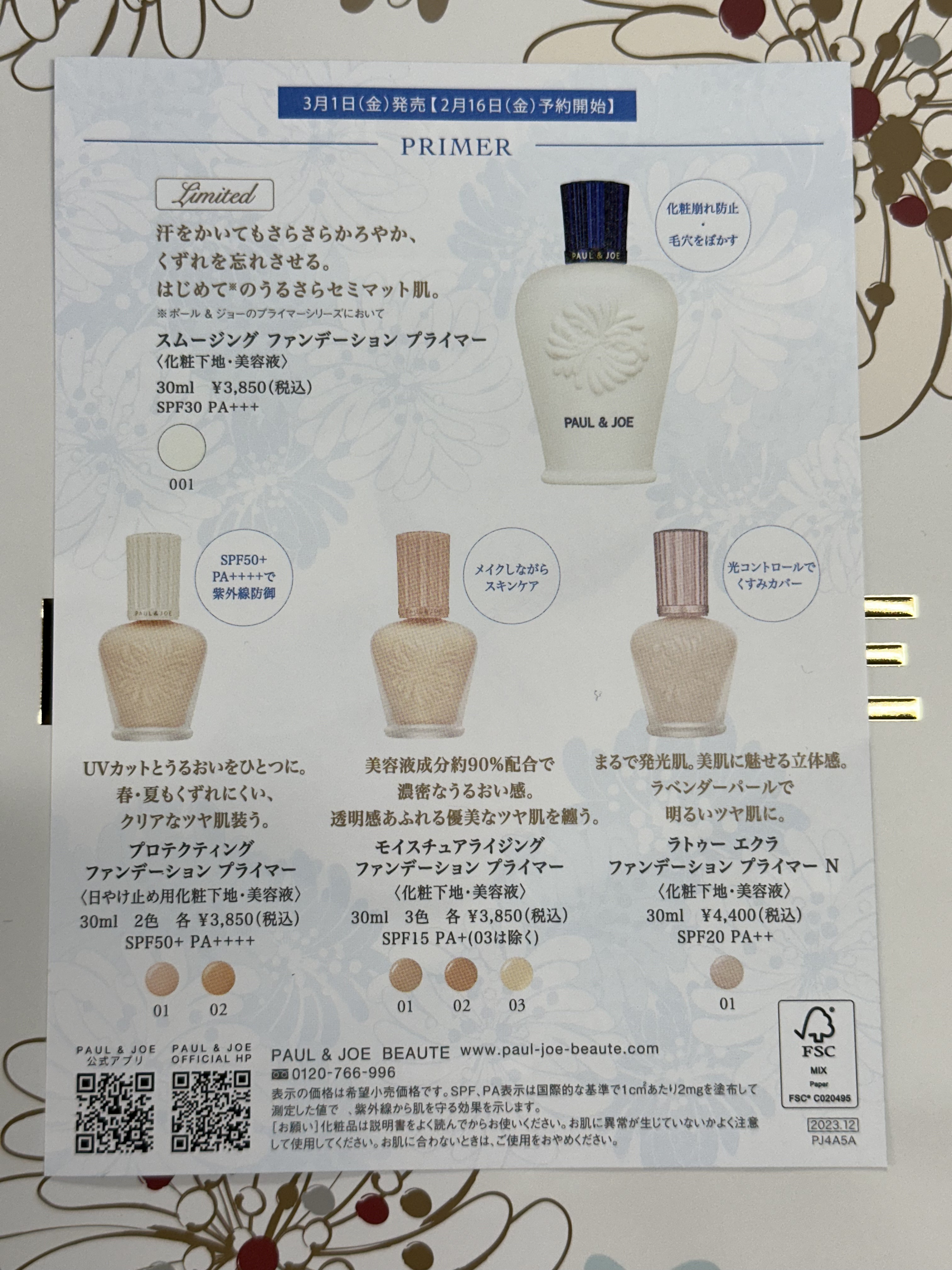 PAUL&JOEBEAUTEスムージングファンデーションプライマー去年の限定だけど個人的に好きだったのとまだオンラインで購入できるので投稿🥰モイスチュアライジングプライマーが伸び良いから比べるの伸びが悪く感じるけどピタッと止まってとにかく肌が...