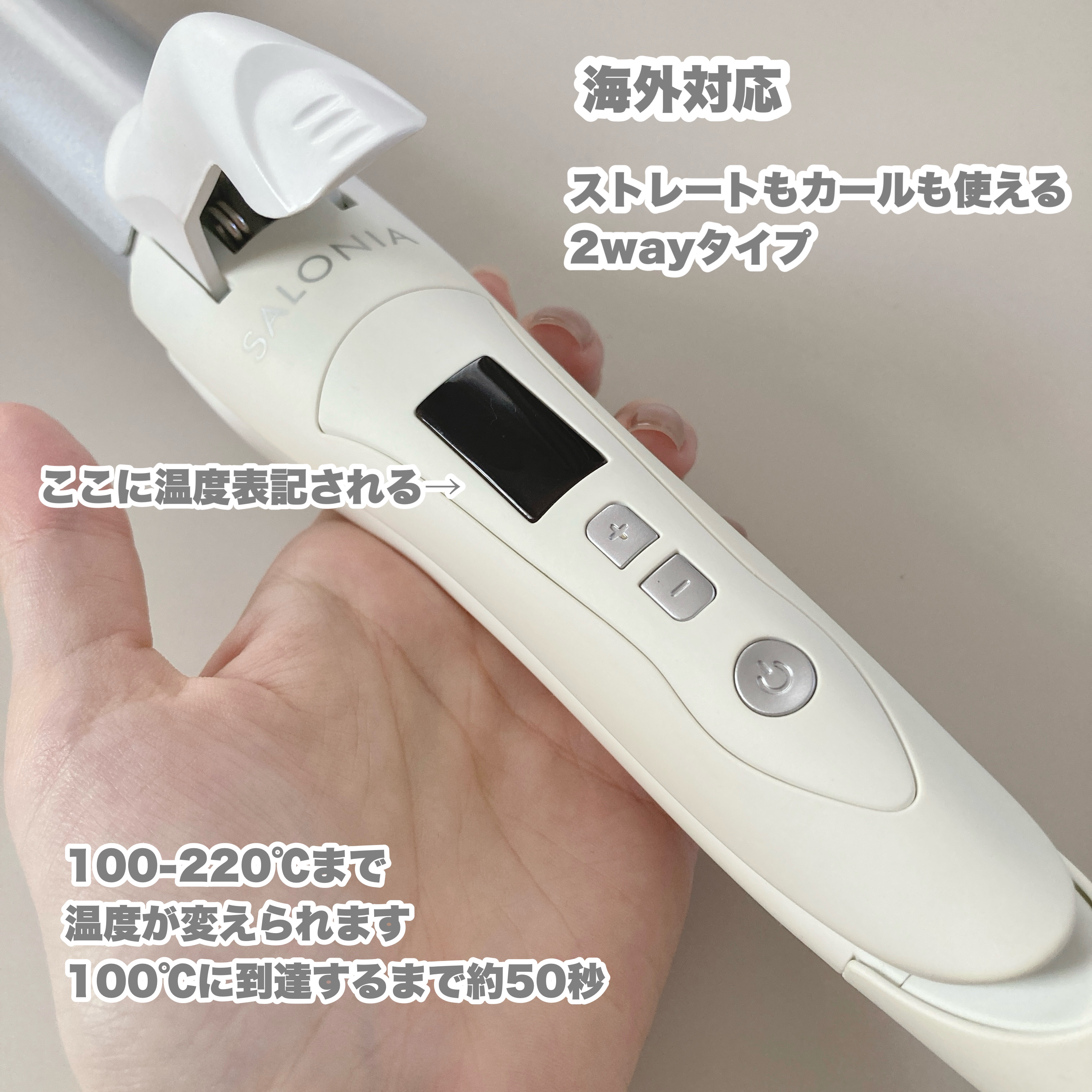 \ヘアアイロン/SALONMOONミラーダブルイオンストレートヘアアイロンムーングレー24mmを新しく買ったので以前から使ってたSALONIA2WAYヘアアイロンと一緒にレビューしていきますと言ってもストレートオンリーのアイロンとストレート&カールの2wayなのでちょっと単純比較しにくい部分もありますまずSALONIA2WAYヘアアイロンは海外対応で3000円くらいで買えるのが魅力的で2wayなのもいいし見た目もかわいく結構前から使っていて現在2台目ですなにかとサロニアのアイロンは良くないと言われて比較されてすごく悲しいのですが私的にはいままで特に悪いとも思わず普通に使っていましたアイロン系は壊れたら変えばいいやと思ってたのですがプレートの寿命があるらしく傷んでくると綺麗にできなくなったりして髪の痛みに繋がるらしい似てる話てビューラーもなかなか壊れないからずっと使えるものって思ってたけど割と買い替えた方がいいと知った時と同じ気持ち最近ストレートしか使ってないなと感じたのと購入から期間が経ったなと思ったのと同じく低価格帯で人気なサロンムーンが気になり今回の購入に繋がりましたサロンムーンのでも従来品の白と黒のやつは少し安くて迷ったのですが細かな機能や形が新しい方がいいなと感じ数百円しか違わないなら新商品の方を試そうと思い選びましたムーングレーの他にピンク系のもあります形が丸みを帯びてるためストレートアイロンでありながら毛先のカールなどもつけられるそう初めてやった時カールしすぎて逆に困ったwプレートがグニャグニャ動く感じ?なのもとっても新鮮だった圧力をいい感じにかけてくれるみたいもちろんストレートにするのにも特に不満はなく綺麗にスタイリングできましたプレートが今までのがサーっという乾いた感じの質感で実際にサーって音がしてましたSALONMOONのほうはヌル〜っという感じ最初は違和感すごかった本当にこれで伸びてんのか?って感じるのにちゃんとストレートになっていました2wayのは便利だけどストレートのを使う時も全体が熱くなるので気をつけて使わないといけないのが初心者だと結構難しい気がします慣れるとすごく便利だけど!SALONMOONの新しいモデルは温度を記憶してくれる機能がありスイッチを押せば前回使った温度に勝手にしてくれますこれめっちゃ便利!カチカチするの面倒だった個人的に少し難点だったのはコンセントをさしてる間ずっと画面にOFFと出るのが地味に嫌ではある指しっぱなしにしたいけど光ってるの気になるコンセント抜く人にとっては忘れ防止になっていい気がするSALONMOONのアイロン買う人は新しい方買うのおすすめします!どちらも楽天やyahoo#Qoo10でも買うことができますまた#メガ割などはもっと安くなるのでチャンス#秋の自分磨きレシピ