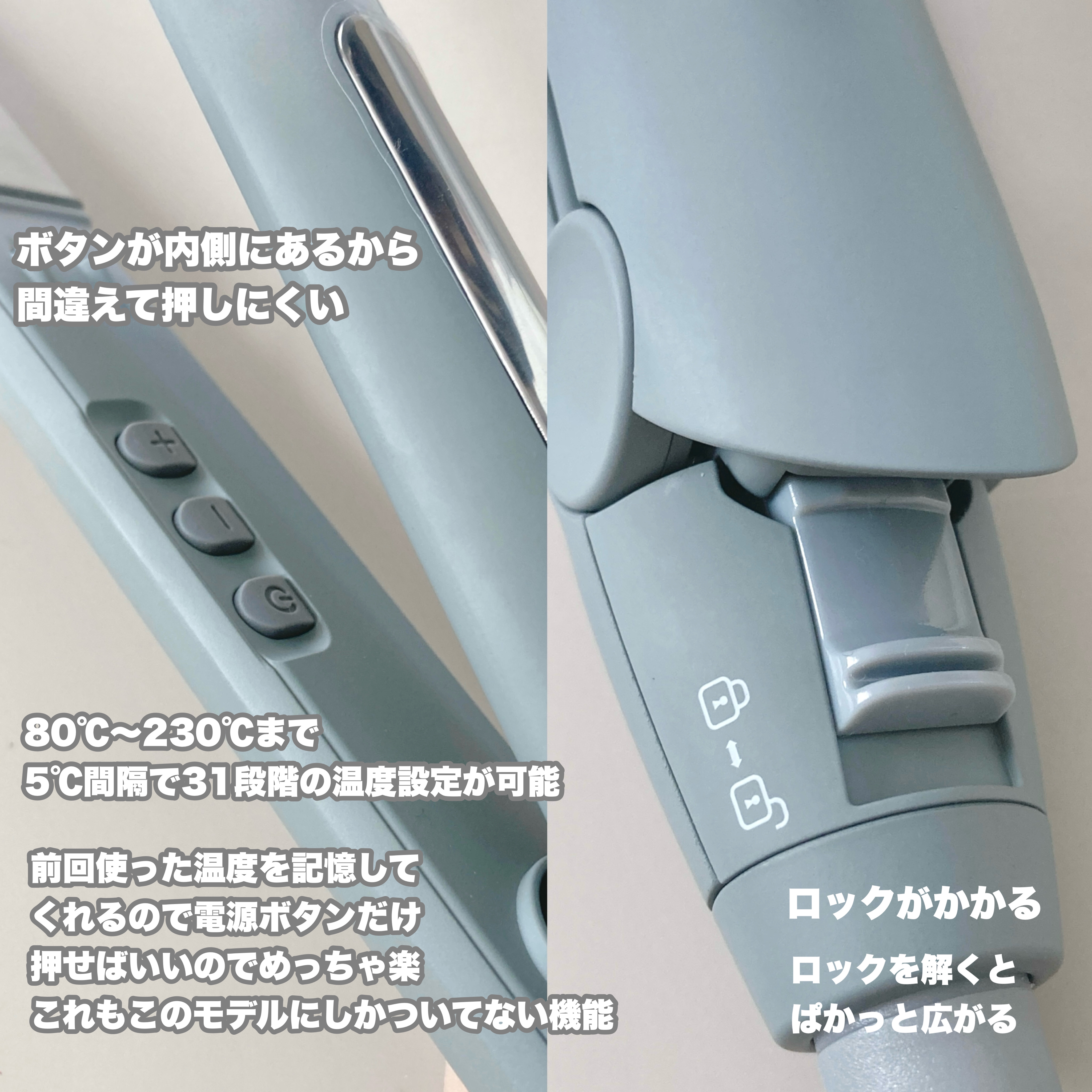 長年使用していたSALONIAがお亡くなりになり、初めてのSALONMOONを購入🫧グラデーションカラーの色合いがすごく素敵で、コンセント&コードまで統一のグレーカラーなのがさらにツボです♡持っても軽く、髪を挟んで伸ばしたときも滑らかで使いやすい!吐出口が2つあってダブルでマイナスイオンが出てるそう。けどマイナスイオンは正直、、わからない😂(どのメーカーでもイマイチわからないのでこのアイロンに限ったことではなく笑)でもアイロン通したあとはサラサラツヤツヤ✨設定温度までの立ち上がりも早く、前回設定した温度で次からは立ち上がるので朝本当に楽ちんです。まだカールは試してませんが、形が丸みを帯びたラウンドボディなので簡単かつ綺麗にできそうで楽しみ。収納時or使用時のロックが少ーし固いのが気になりますが、、妥協できるレベル🫶🏻何よりリーズナブルなお値段なのにコスパよく、大満足なヘアアイロンです🧡