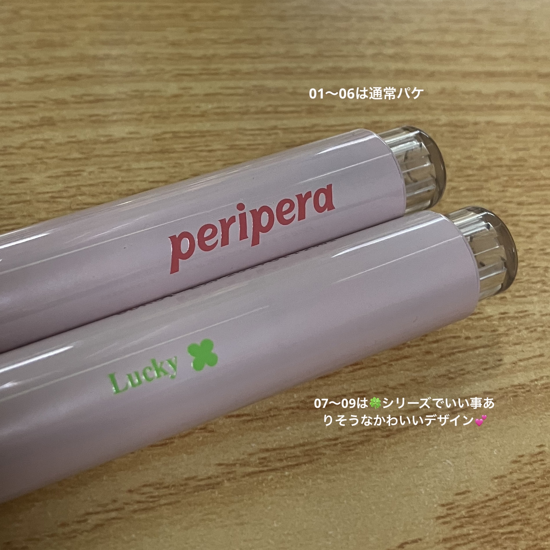 04は、公式画像だとオレンジブラウン系に写ってますが私が使うと普通にコーラルになっちゃいました😅どのカラーも透明感があって元の素肌の色が透ける仕上がりなので、使う人によってかなり発色に差が出ると思います!特に薄い色は! 09は、公式の画像通りかなと思う色味でした。 かわいい青みチェリーレッド🍒です! 07〜09は🍀シリーズでLucky🍀で刻印されててなんかいい事ありそうでかわいいです💕