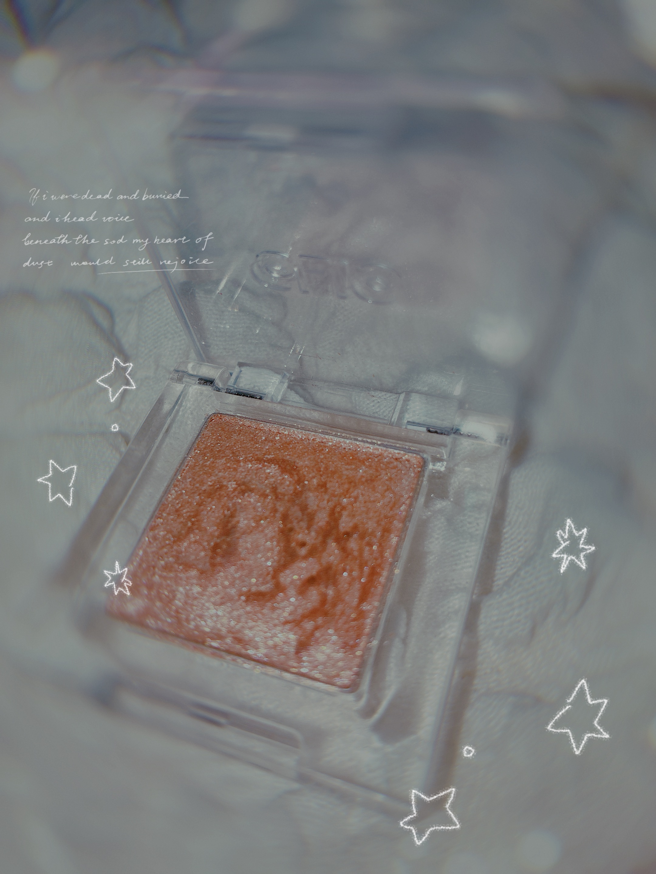 ラメ感が最高に可愛い✨️ 少しピーチがかったゴールドラメ🌸 小さめの多色ラメがぎっしりで まぶたの中央に軽く乗せただけなのに 可愛すぎた🫠 密着感があって1日もってた✨️ 色味と言うよりもラメ まぶたの中央や涙袋に使うのが良さそう