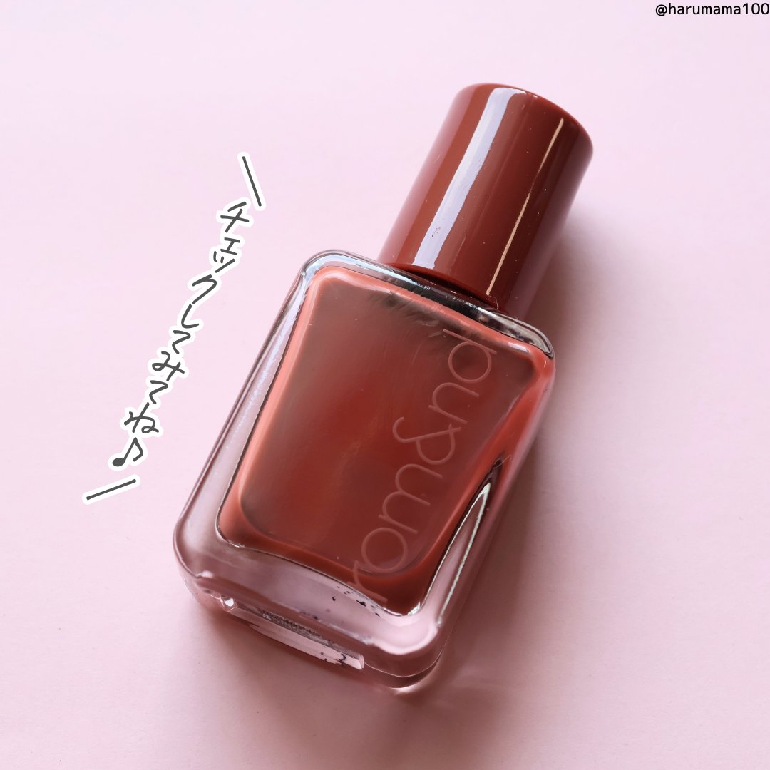ロムアンド恐るべし🤔✨ マロンブラウンというカラー名ですが、若干赤みのあるブラウンで、くすみピンク系のポリッシュとも合います🥀 このシリーズは結構ムラになりやすいので しっかり発色させたい私の場合は2、3度塗り重ねるようにしています◎