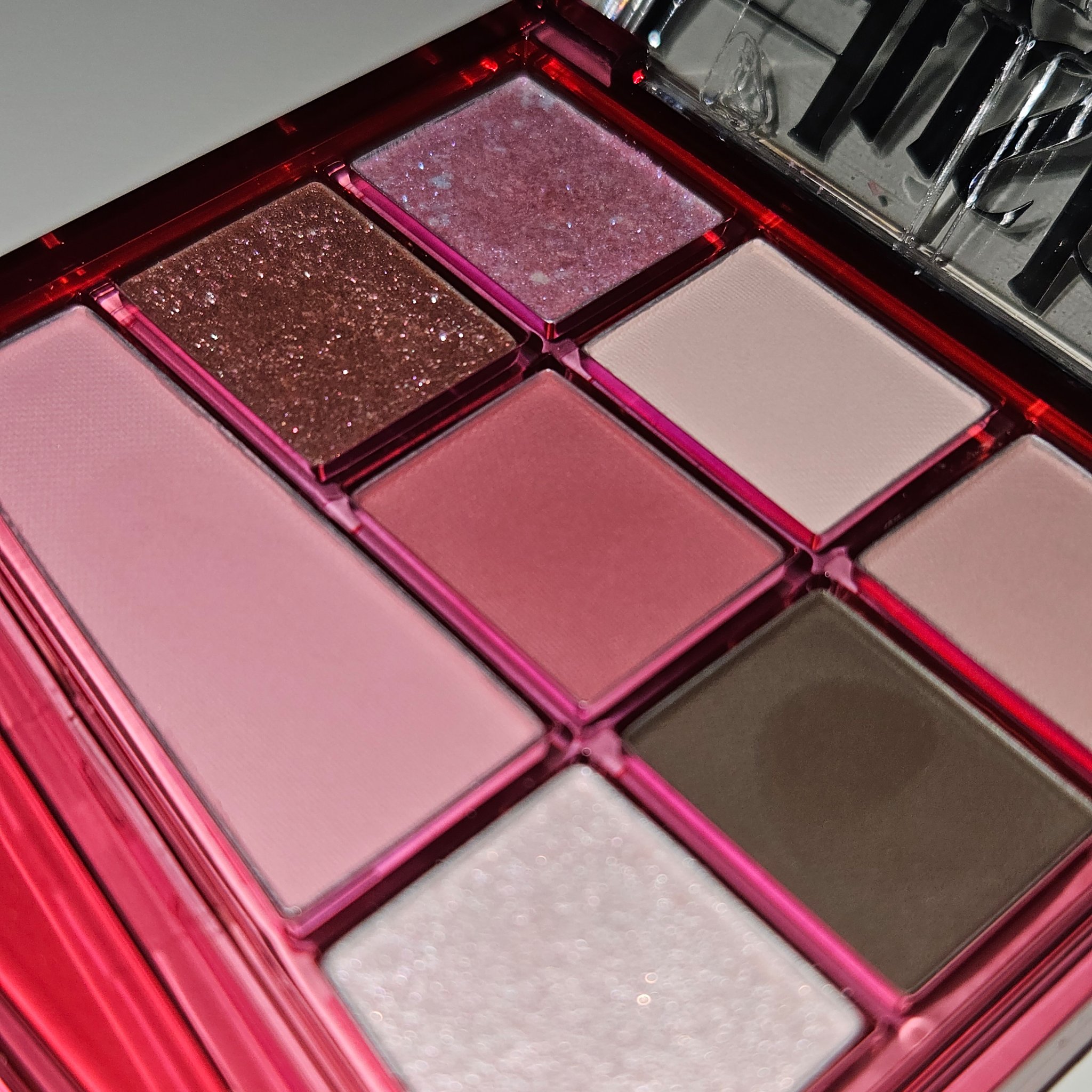 ビビッドピンク、パープルやピンクゴールドラメ、チャコールグレーの放つインパクト これ、名称はアイパレットですが 全顔用のマルチパレットとしてイケると思いました👍️ 全体として、かなりラブリーで甘めのカラーなので デートや記念日、イベントにうってつけ!