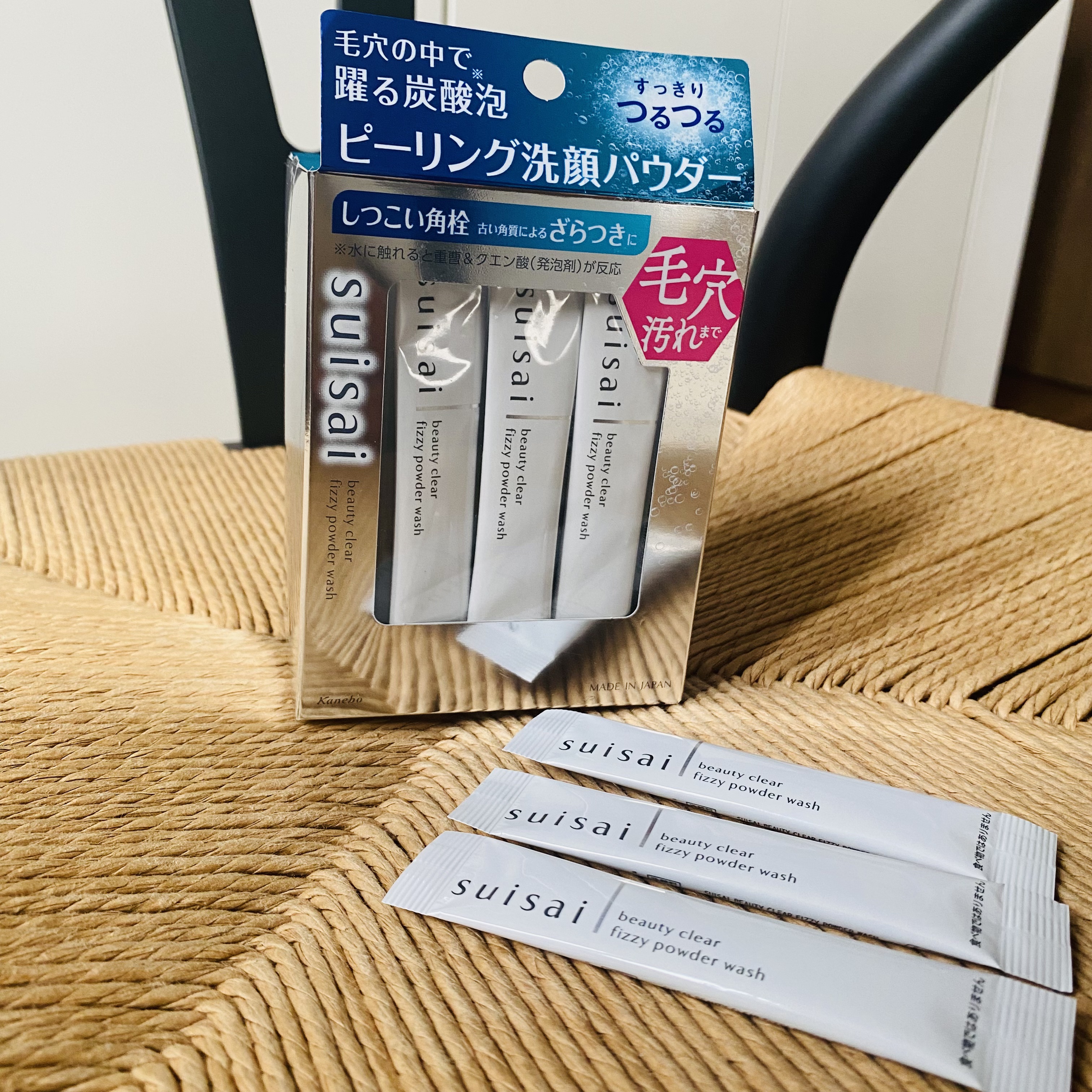箱に32包。suisaiの文字を分割することなく、スティックをカットできるのがいいですね。ブランドを大切にしてる感じが伝わってきますし、suisaiの部分だけ集めたくなります。 小鼻周りにも使うアイテムなので、使いやすい無香料なのが◎。洗顔中鼻に泡が入っても素材のにおいがかすかにあるかもです。気にならずに使えて、スペシャルケアだけではなく使いたくなります。 パウダーウォッシュ好きなんですが、泡立てるのは苦手。そんな方にも使って欲しい、suisai ビューティクリア ピーリング パウダーウォッシュをぜひ。