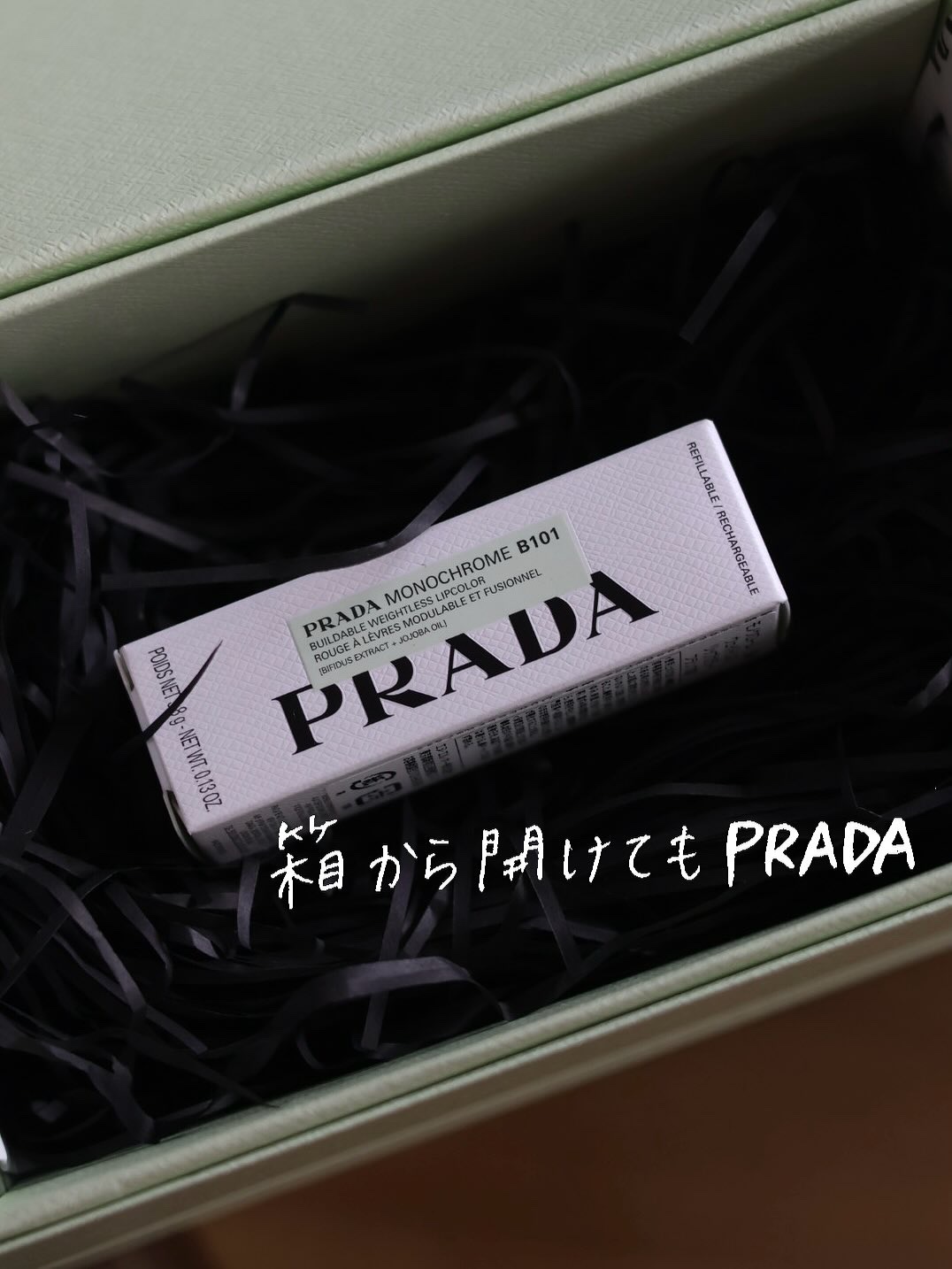 PRADAのリップ買っちゃったんだが…箱からして圧がすごい。開けても開けてもPRADA。(箱→紙→シール→リップの本体、どこ見てもPRADA。笑)中身のリップはというと、見た目ゴリゴリにハイブランドなのに、塗ると意外と“日常でも使えるローズベ...